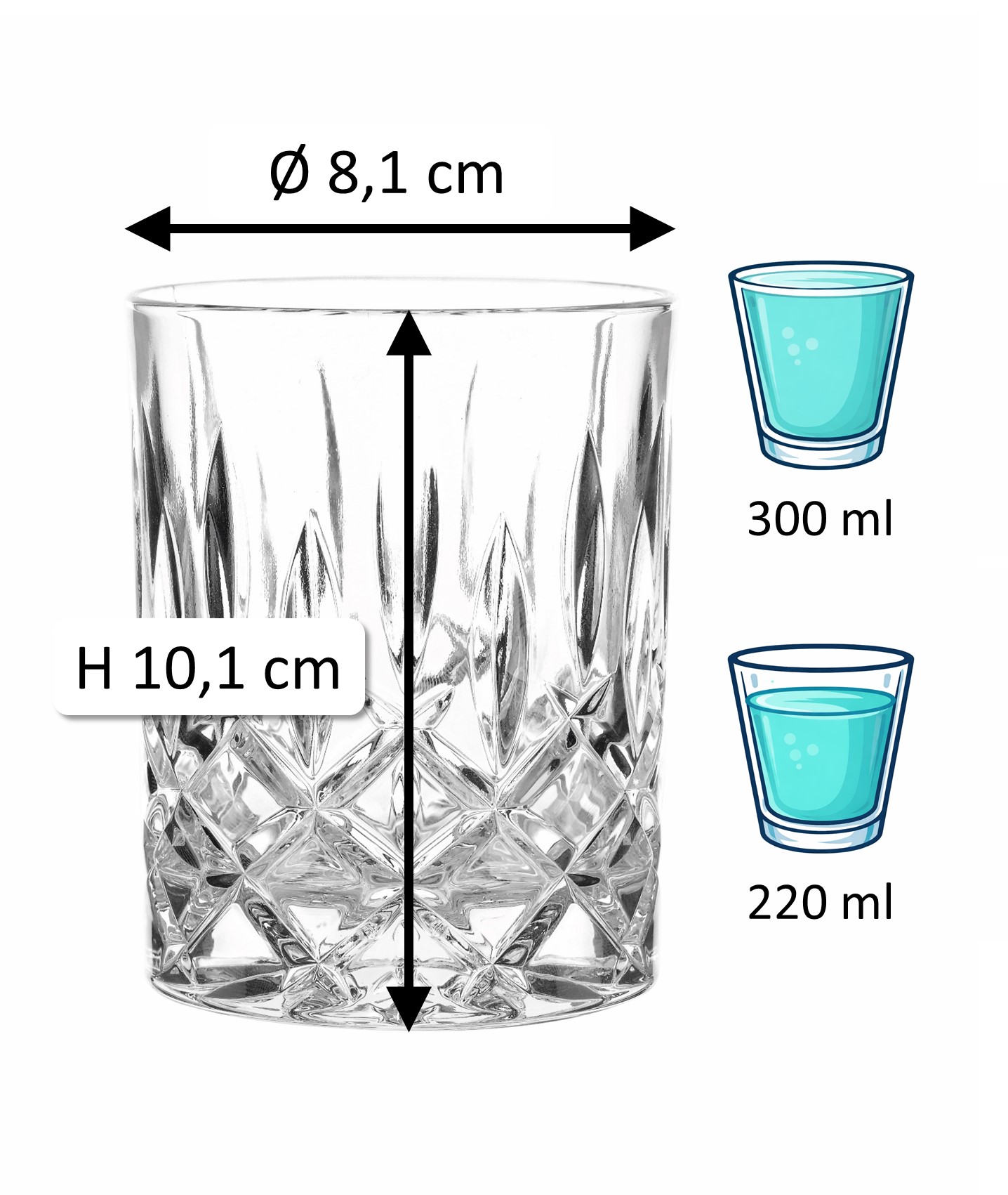 The glasses have a diameter of 8,1cm each and a capacity of 300ml. Moreover they have a thick base which will help to keep the perfect temperature of your drink. Due to the fine and stylish cut the glasses are very handy and have a good grip.