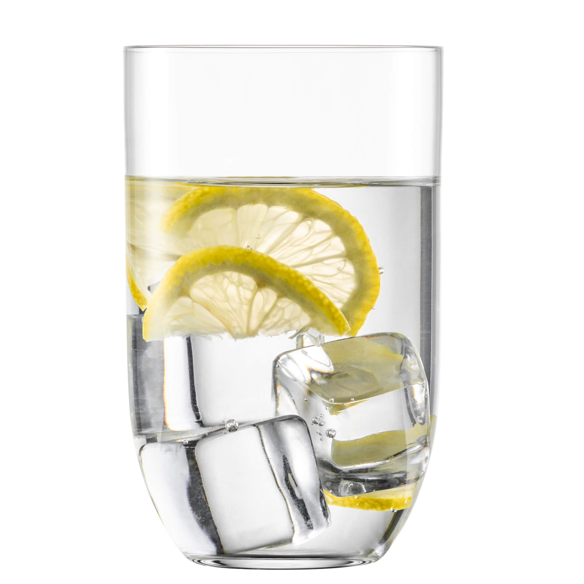 The Zwiesel Rooftop Allround glass holds 390 ml when filled to the brim. When filled with 300 ml to around 350 ml, there is still room for ice cubes. Serve water, soft drinks, juices, long drinks, or creative highball variations in this versatile drinking glass.