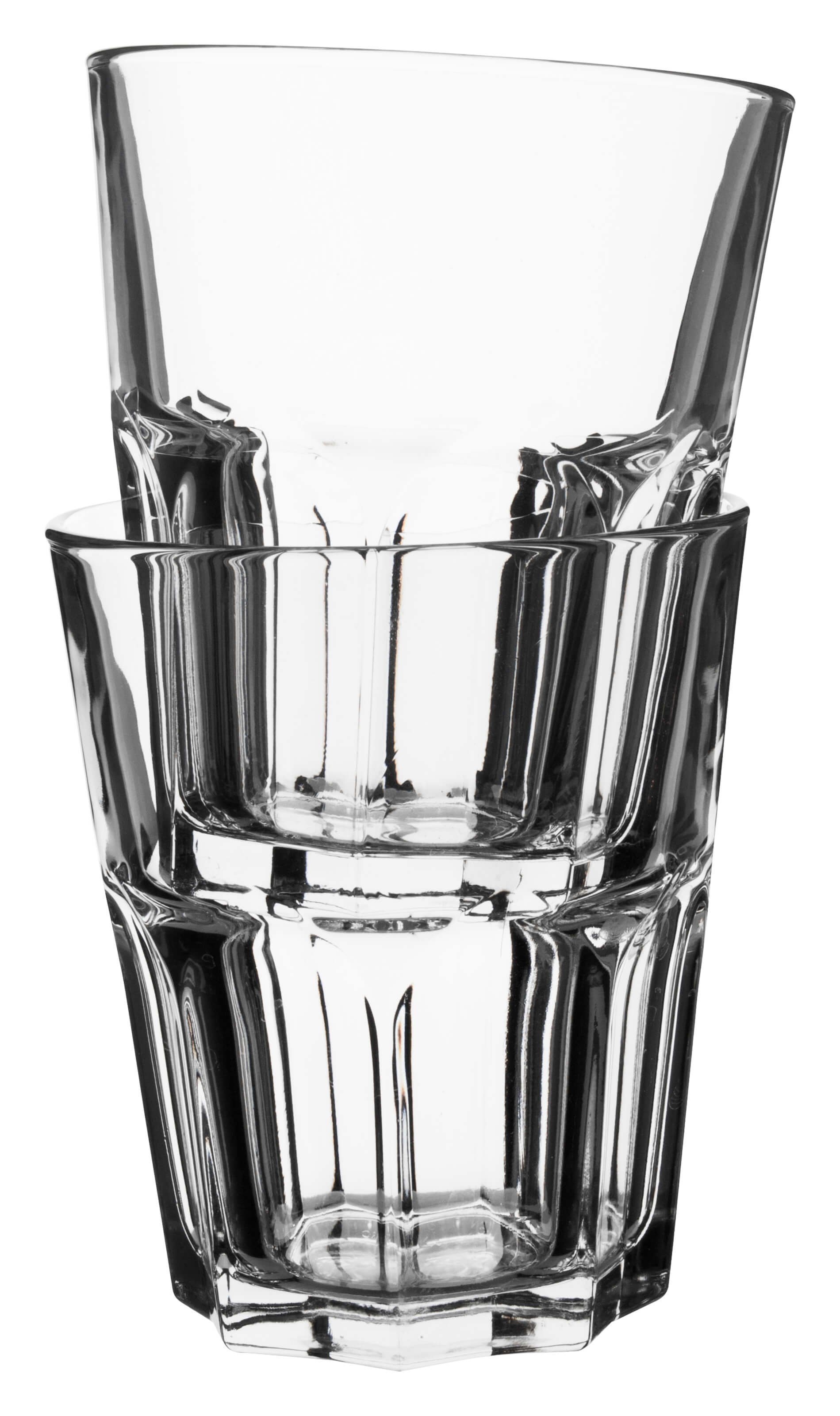 Arcoroc's Granity series is one of the more popular glass collections; the stable, pragmatic glass design is a timeless classic. Beyond that, the glasses are sturdy, dishwasher-proff and on top of that, even stackable for especially space-saving storage.