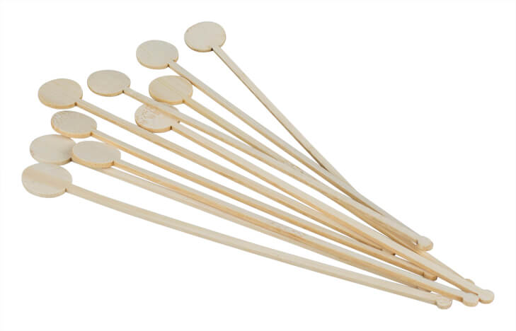 These 18cm long rods feature a smaller and a slightly larger coin on each end and can be used either way around to stir. Used as garnish, these bamboo stirrers can add tropical flair to fruit-based cocktails.