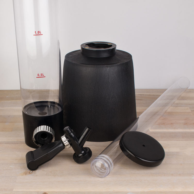 The transparent plastic tower allows you to see the fill level at all times. Practical markings in 0.5 liter increments make it particularly easy to keep track of the fill level – whether you're refilling or watching with excitement to see how quickly the dispenser empties.