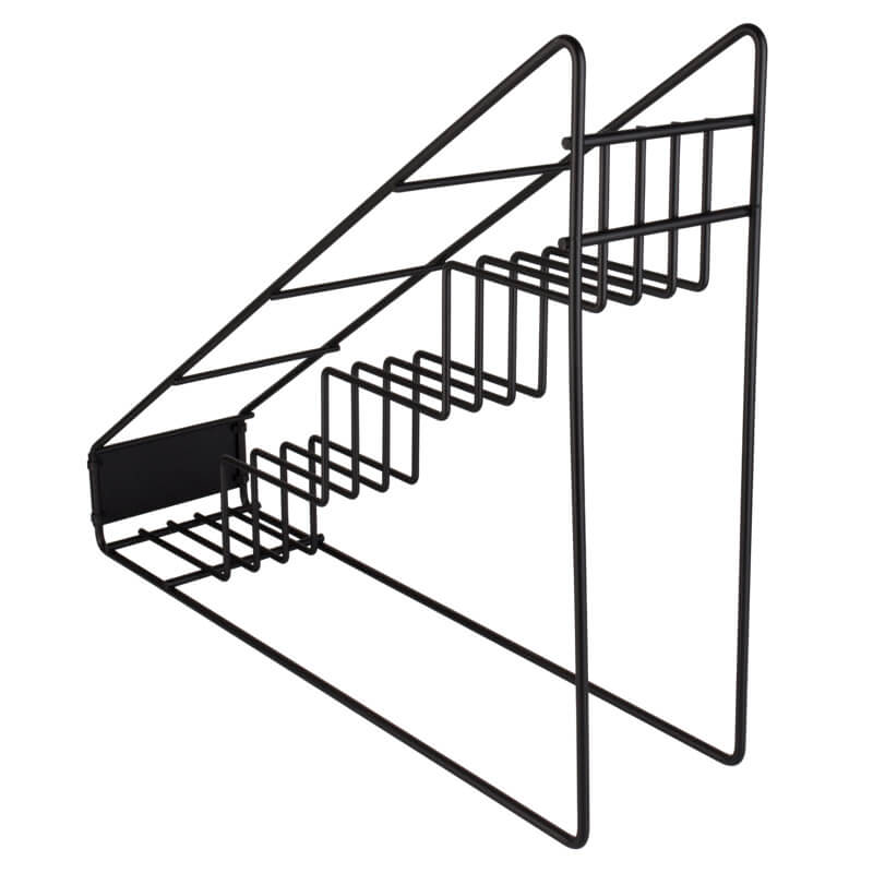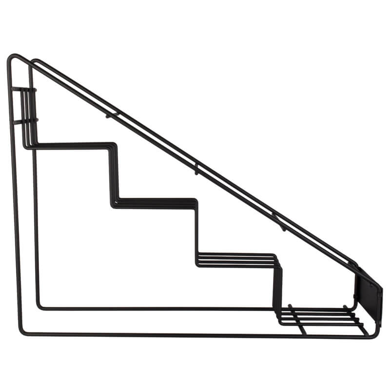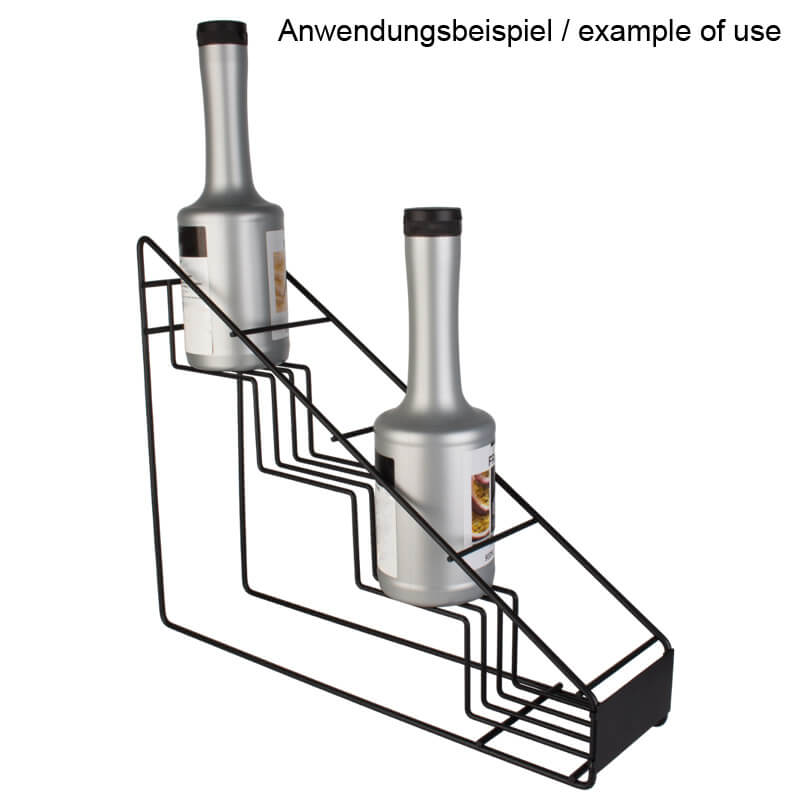 This bottle display, which is only 15cm wide, offers space for four bottles. The stepped design is perfect for syrup or sauce bottles with a dispenser pump, for example. This means you have four varieties to hand and hardly any space taken up. As the black bottle display is very lightweight, the bottles and their labels are visible from all sides. There is also space for additional bottles or other utensils under the rack.
