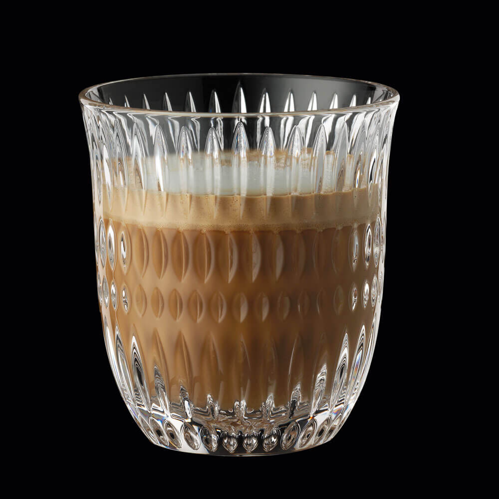 This Nachtmann cappuccino glass is part of the "Ethno" series, which is characterized by brilliant crystal glass and a pleasantly harmonious pattern. The 9cm high cup has a flared rim with a diameter of 8.3cm – so there is enough space for latte art. The cappuccino glasses are suitable for hot drinks and can be cleaned in the dishwasher. This makes the ethnic glasses a good choice for gastronomy and at home.