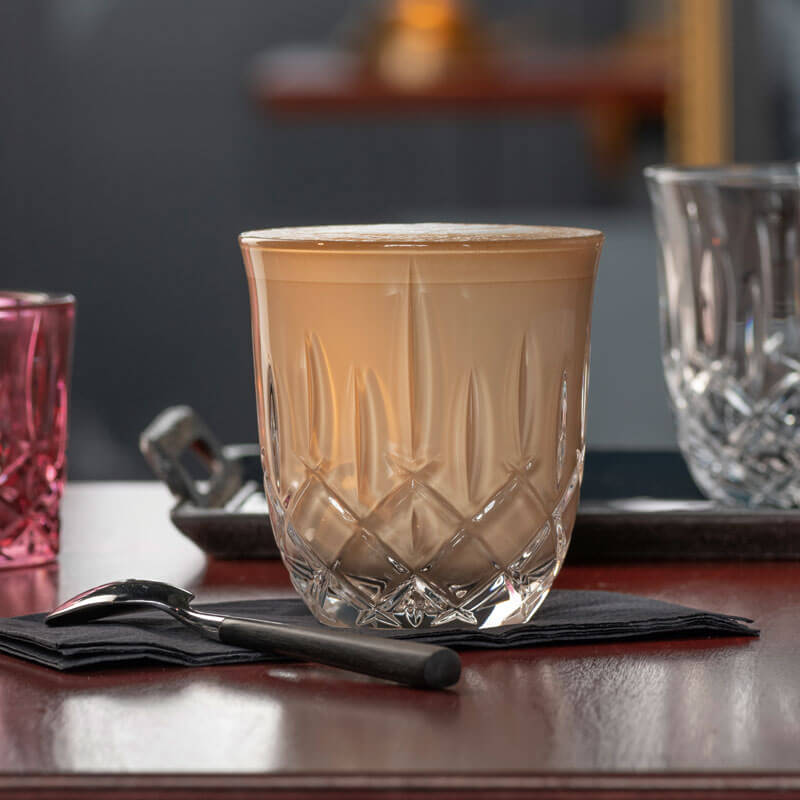 This cappuccino glass is a welcome addition to the Noblesse glassware series from Nachtmann. Like the other glasses in the extensive and popular series, the Noblesse cappuccino glass is decorated with a timeless pattern of diamonds and sparkles. It is made of brilliant crystal glass and has a clearly perceptible surface. The sturdy, thick glass can withstand daily use without any problems and is suitable for hot drinks and dishwasher cleaning.