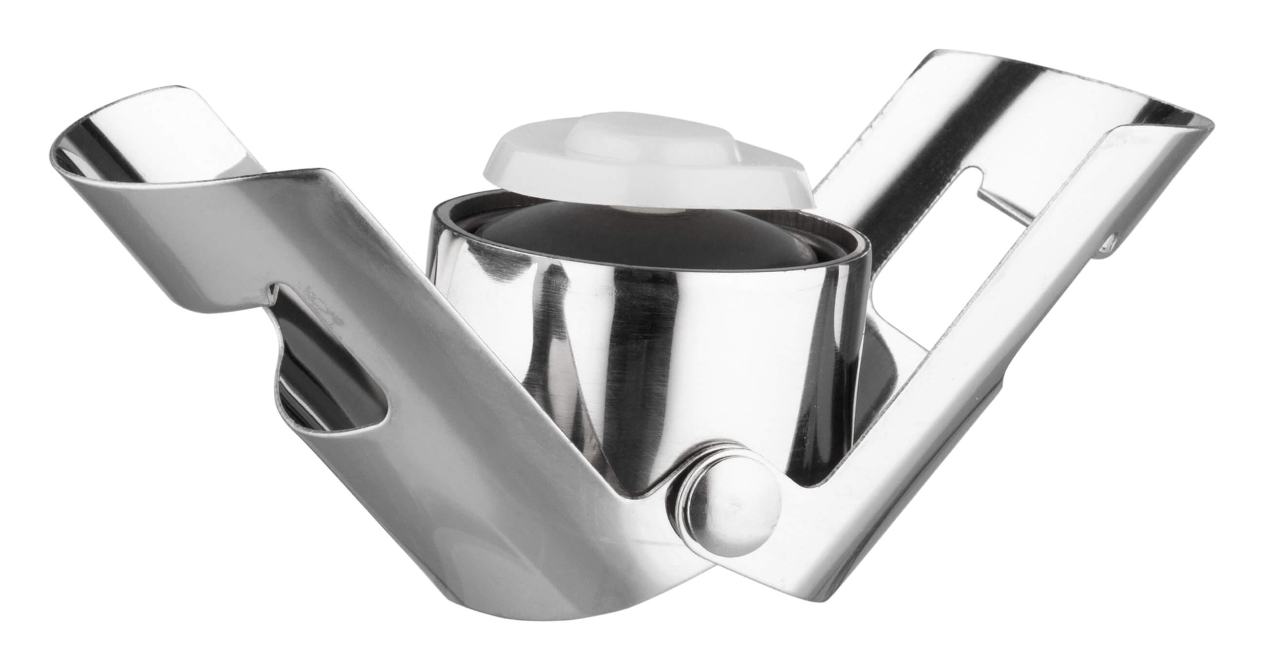 This silver colored bottle closure is chromed and is qualified for a secure locking of a sparkling wine bottle. Push the levers upwards, place the bottleclosure on the bottle and at the same time equally push the levers downwards.