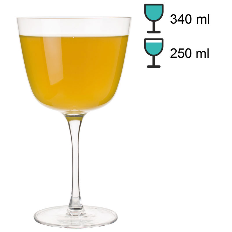1Note: The specified 'total volume' (also referred to as gross capacity) of a glass indicates the maximum amount of liquid it can hold when filled to the brim. In contrast, the 'fill volume' (also referred to as usable volume or serving volume) describes the practically usable amount. Both values are given in ml or l. Due to production conditions, a tolerance of ±5% may occur, which corresponds to industry standards and does not constitute a defect.