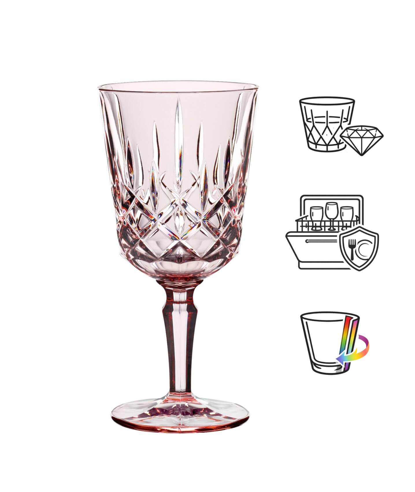 This cocktail and wine glass from Nachtmann is part of the popular Noblesse series and features the corresponding pattern on the goblet. The special feature of this large goblet glass is the pink color of the crystal glass. The color has a particularly romantic effect and goes perfectly with sweet wine and flowery cocktails.