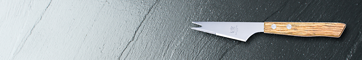 Cocktail knives are mainly used in bars to process fruit. These usually medium-sized knives with a typical blade length of around 9-14 cm are serrated and often feature a double-pointed blade end. The double tip can be curved or straight. Some cocktail knives also come with a flat grind in addition to the serrated blade. Handles are made of plastic, metal or wood. Well-made cocktail knives are characterized by a fine and seemingly gapless transition from the handle to the blade.