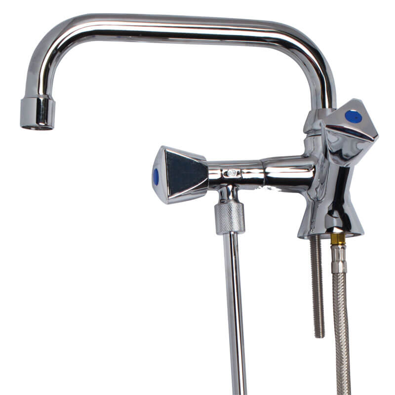 This cold water tap by manufacturer Bruse is chrome-plated and features an underflush pipe. It is connected with a flexible hose, which is also included. The tap with aerator protrudes far out so that you can also fill or clean larger containers. With its underflush pipe, the cold water tap is perfect for washing glasses, as the fresh water flows into the sink at the bottom while the used water drains off at the top.