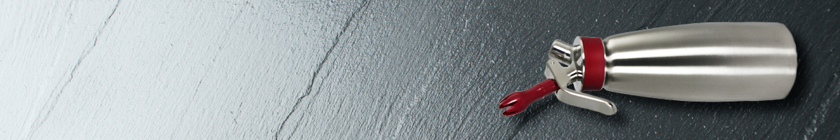 The aluminum siphons are available in various sizes and work with disposable nitrous oxide cartridges. As with a spray can, the cream is pressed through the nozzle with the help of this propellant gas and foamed in the process. In contrast to whipping by hand or with a machine, the whipped cream produced in this way achieves a greater volume; moreover, the process takes only a few seconds and does not have to be done by hand. When whipping by hand, there is always a risk of whipping the cream too long - this can cause it to become grainy or even take on a buttery consistency. Foaming in the siphon eliminates this problem.