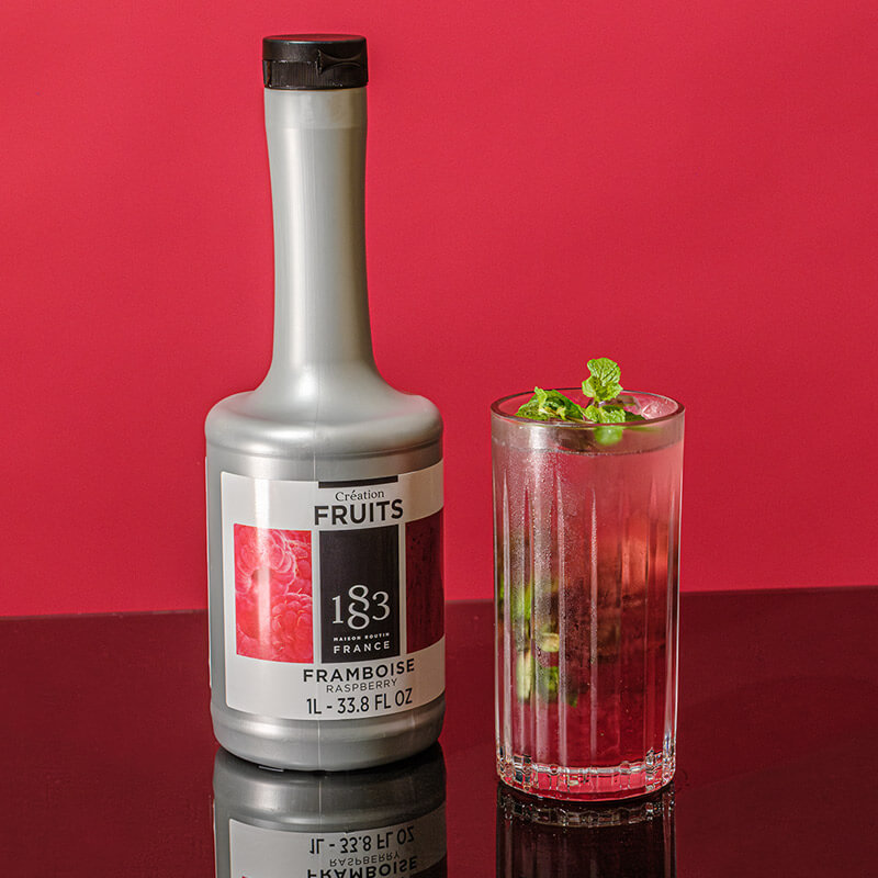 Création Fruits Raspberry brings the natural sweetness and refreshing tartness of raspberries to your drinks. In addition, the fruit puree mix's deep red color and velvety texture add depth to cocktails and milkshakes.
