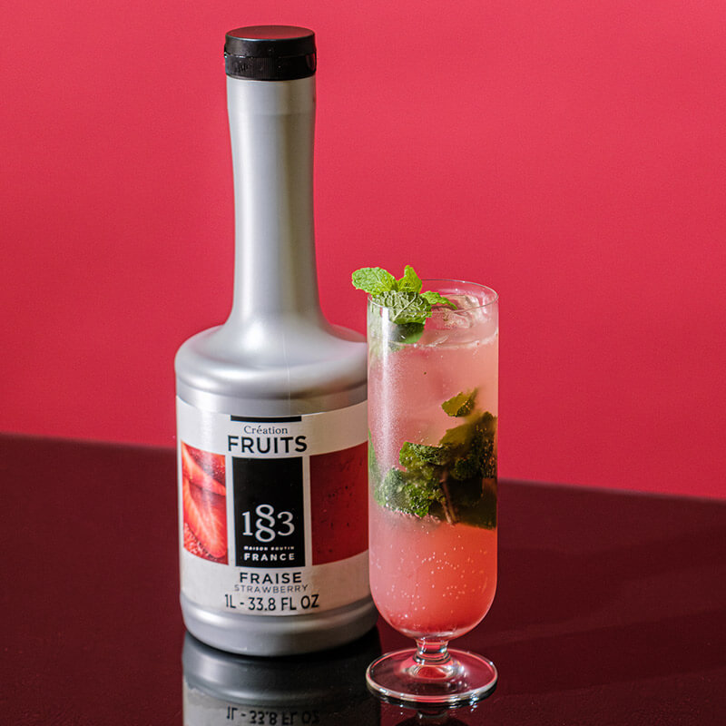 Création Fruits Strawberry is a fruit purée mix with 55% fruit content and a velvety texture. The fruity, floral taste of fresh strawberries is followed by a sweet note reminiscent of homemade jam. This makes Création Fruits 1883 Strawberry the perfect choice for milkshakes and fruity cocktails - even outside of strawberry season.