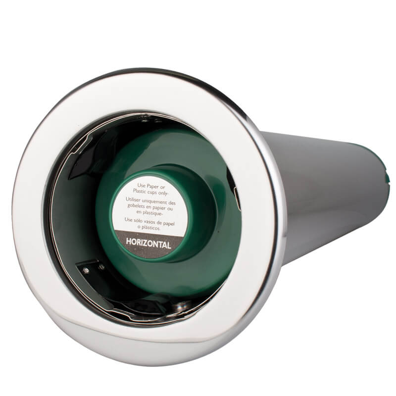 With a tube length of 59,7cm and an outer ring diameter of 13,5cm, the dispenser offers sufficient capacity without taking up much space. Thanks to the patented sleeve system, it can be adjusted to fit cups with a diameter of 56–81mm. Perfect for coffee and espresso cups in the to-go sector. An integrated spring ensures that the cups are always in the perfect position for removal.