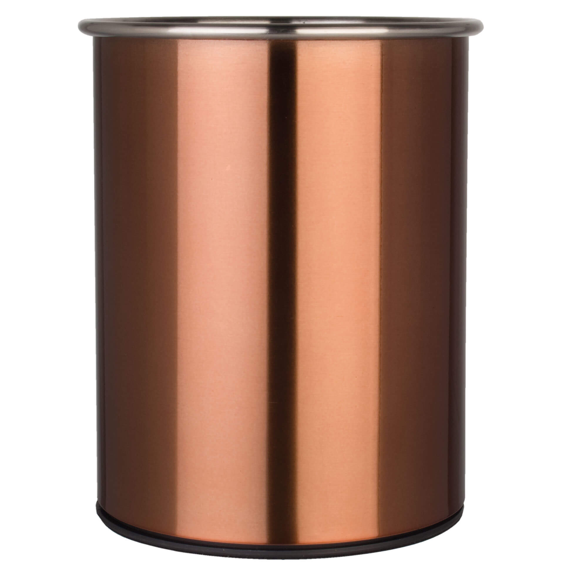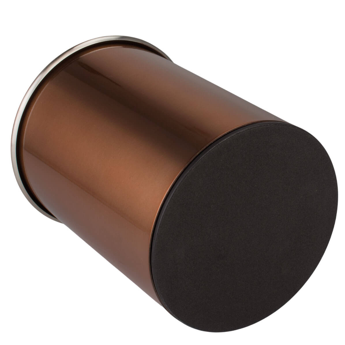 This rotating cutlery holder has a shiny copper finish and looks great on any table. It's also extremely practical and versatile. The removable stainless steel divider allows you to divide the cutlery holder into three compartments. The large compartment takes up half of the cup, and the other two each take up a quarter. To protect the tips of knives, there’s a silicone insert at the bottom of the cutlery holder. Tables and other furniture are also protected, as the underside has a velvety finish.
