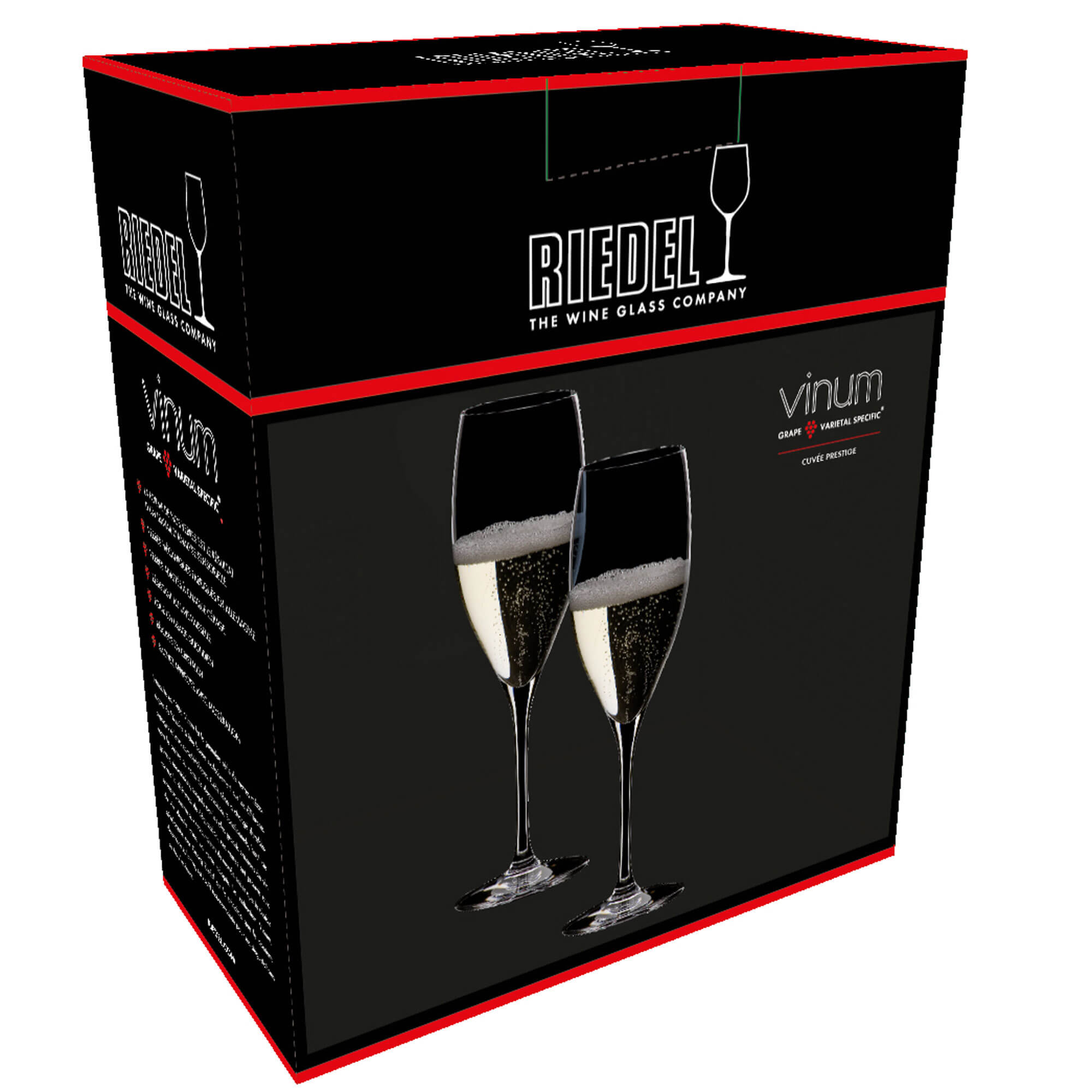 The Cuvée Prestige glass from Riedel's 'Vinum' collection is ideal for skilfully accentuating the aroma and flavor profile of champagne while at the same time enhancing its natural bubbles. However, due to its perfect design, it is not only suitable for 'Cuvées de Prestige', in other words top Champagne vintages, but also for any other type of the sparkling wine. The light, balanced glass with the narrow flute goblet is capable of capturing the full spectrum of Champagne aromas and even highlighting their richness. In addition, there is a mousse point at the bottom of the filigree goblet so that the best can be extracted from record-breaking sparkling wines, both visually and in terms of taste.