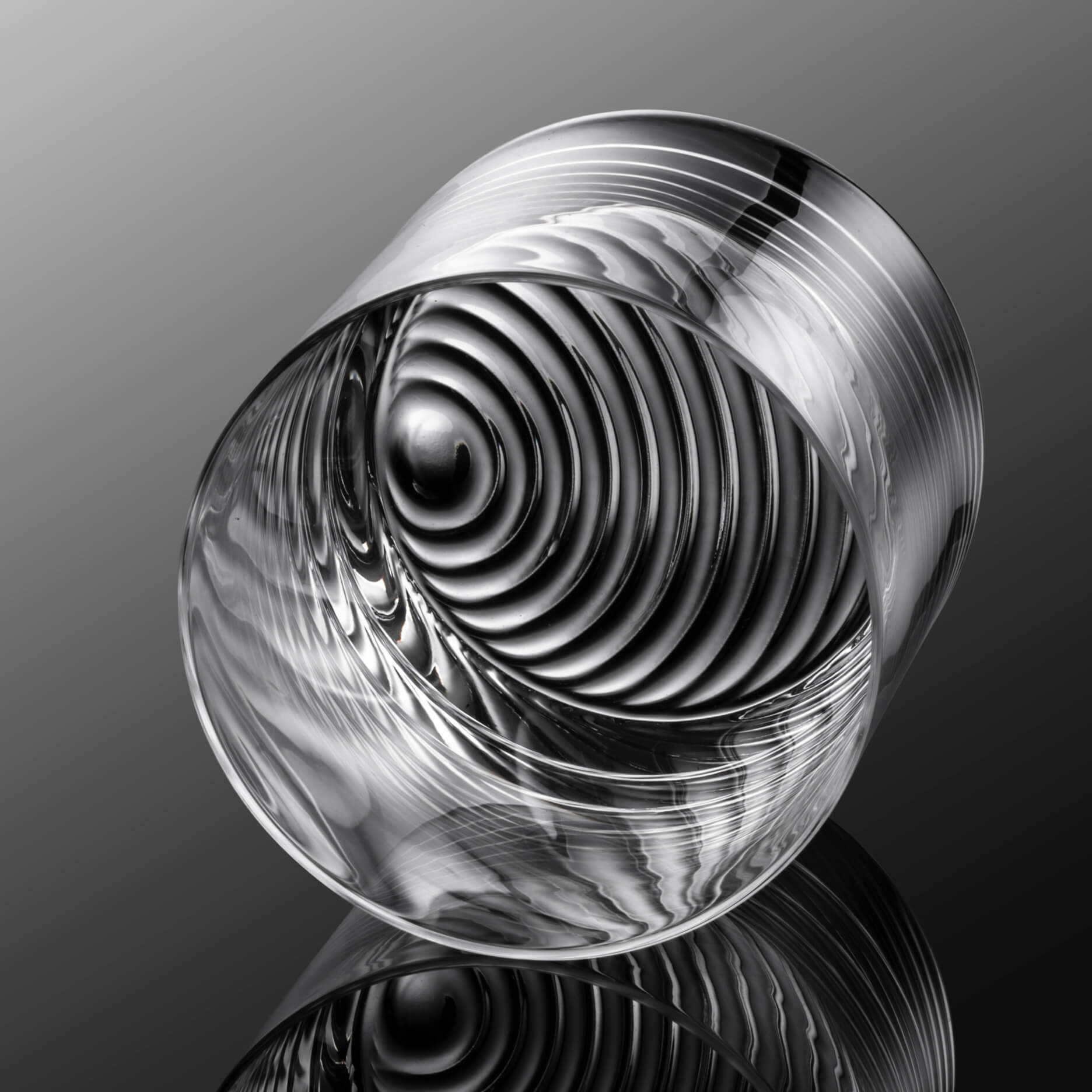 For the most part, the whisky tumbler has a classic shape, but manages to stand out from the mass of glasses due to a cool design highlight at the bottom: the underside of the glass base is engraved with the unique pattern of the Volume series. It consists of a series of semicircles that appear to emanate from a little circle – like the ripples that are created when throwing a small stone into a calm pond.