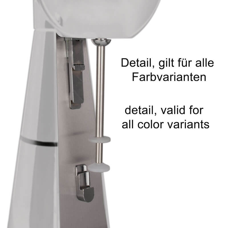The drink mixer is made of high-quality aluminum and stainless steel with spindles of food-safe plastic. The package also includes a 900ml stainless steel cup. Thanks to the clever holder, you can use your own cups as well. Four positions are available for this, for cups from 11-18cm. The 350W motor and other technical parts are made in Italy and of course every appliance is CE-certified.