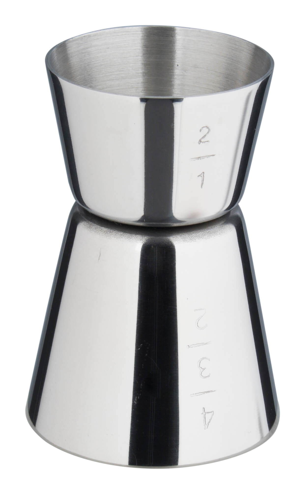 This small double jigger made of stainless steel combines functionality with minimalist design. The jigger features one measure cup of 20ml and one measure of 40ml. This way different ingredients can be measured in a matter of seconds. The smaller measuring cup is adorned by a detailed engraving.