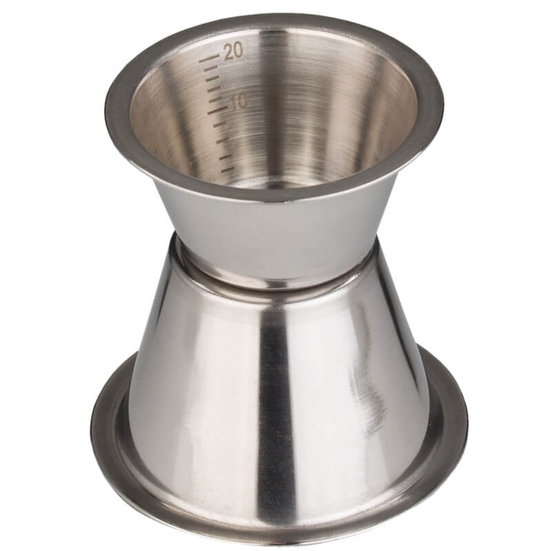 This double jigger is made of stainless steel and provides you two measuring cups (20/40ml). The scale with 2ml steps on the inside facilitates the exact measurement of liquids.