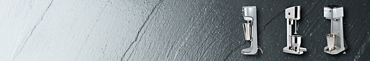 Drink mixers are electrically operated mixers for preparing milkshakes, frappés or smoothies. They consist of a base station with an electric motor, which drives a mixing rod (spindle). Open metal mixing cups can be inserted easily by either hanging or placing them on the base station, depending on the model.