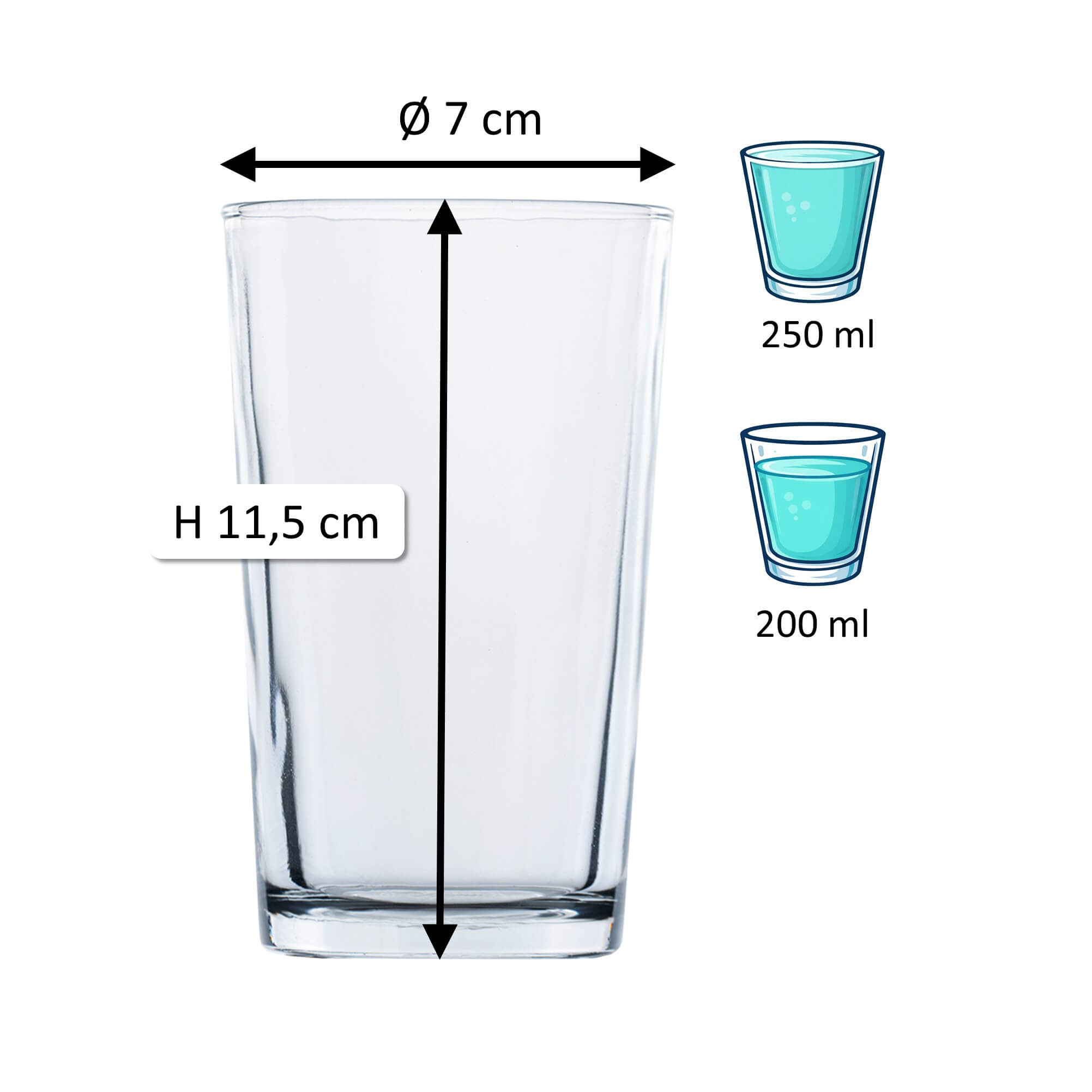 1Note: The specified 'total volume' (also referred to as gross capacity) of a glass indicates the maximum amount of liquid it can hold when filled to the brim. In contrast, the 'fill volume' (also referred to as usable volume or serving volume) describes the practically usable amount. Both values are given in ml or l. Due to production conditions, a tolerance of ±5% may occur, which corresponds to industry standards and does not constitute a defect.