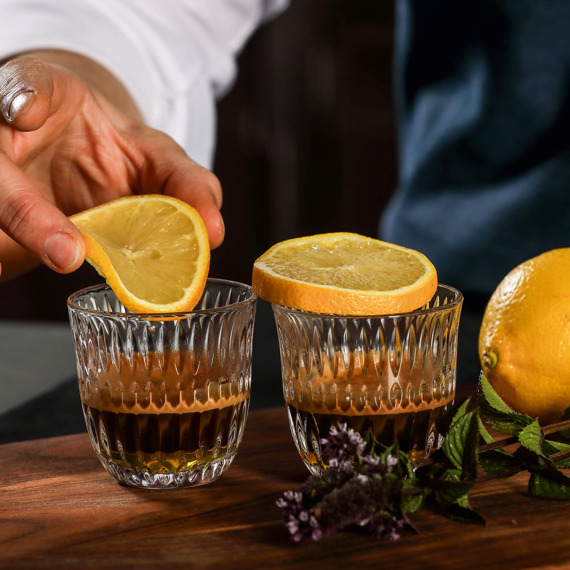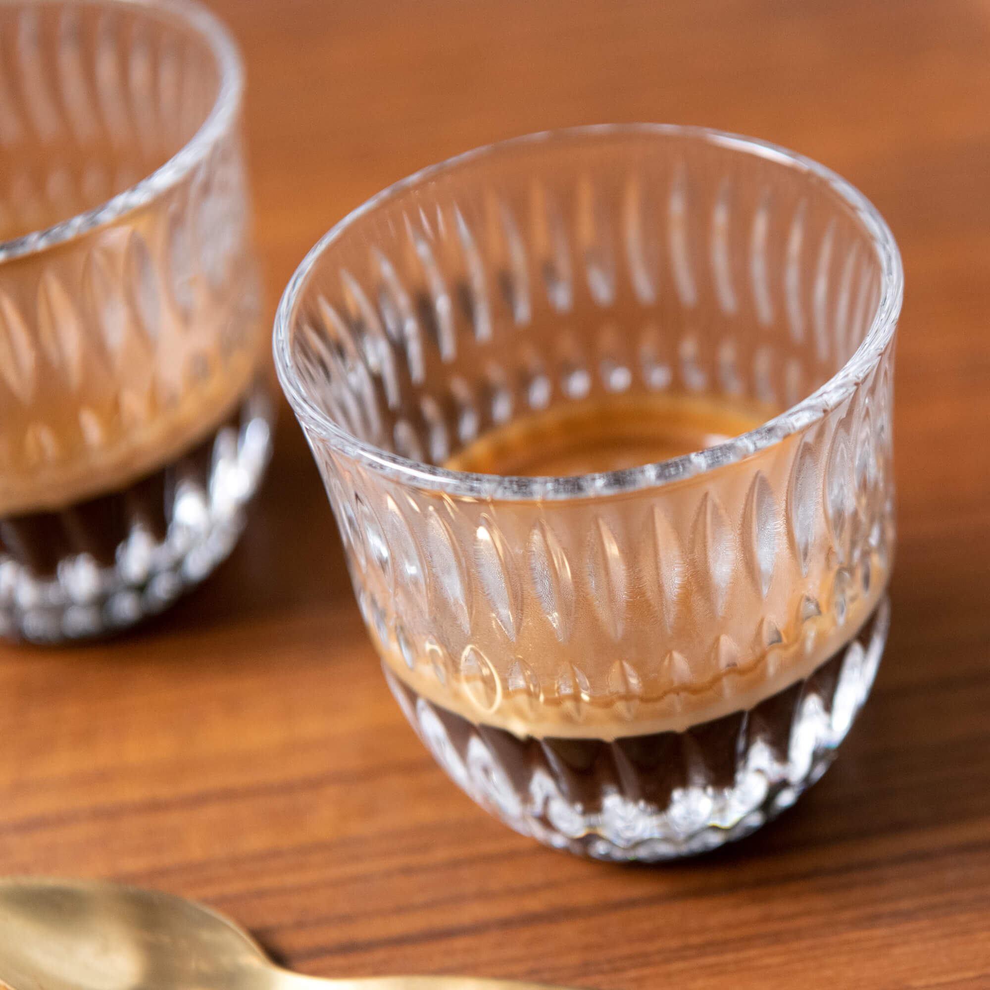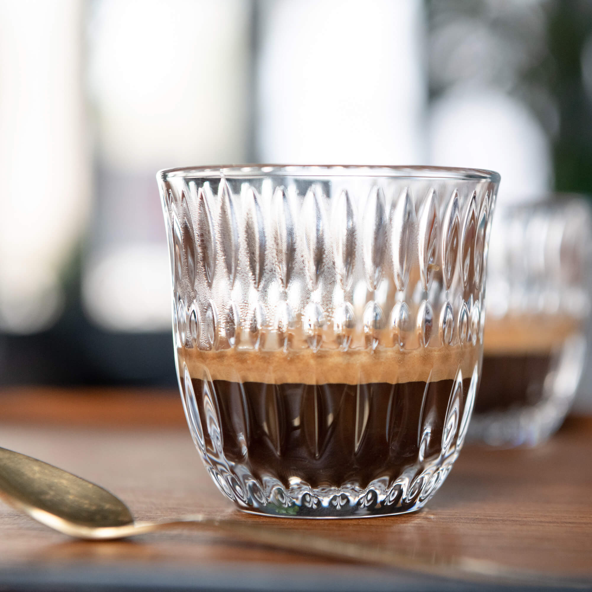 In addition to coffee creations, this espresso/doppio glass is also suitable for serving tea; or you can simply use a second 'Ethno' espresso glass to provide your guests some water with their espresso.