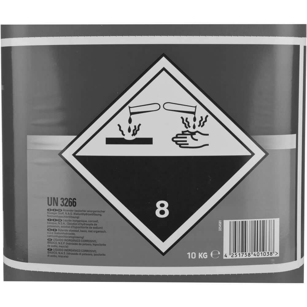 Danger warnings: May be corrosive to metals. Causes severe skin burns and eye damage. Harmful to aquatic organisms with long-lasting effects.