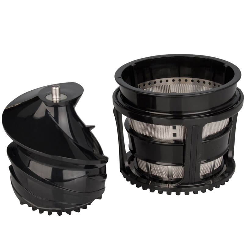 The Gastroback Slow Juicer Advanced Vital can juice all types of fruit and vegetables – even special ones such as leafy vegetables, grasses, wild herbs and sprouts. This is ensured by the 150 watt motor and the powerful press screw with reinforced stainless steel core. The electric juicer works particularly quietly. Juicing is also gentle, as fruit and vegetables are processed at only approx. 70 revolutions per minute.