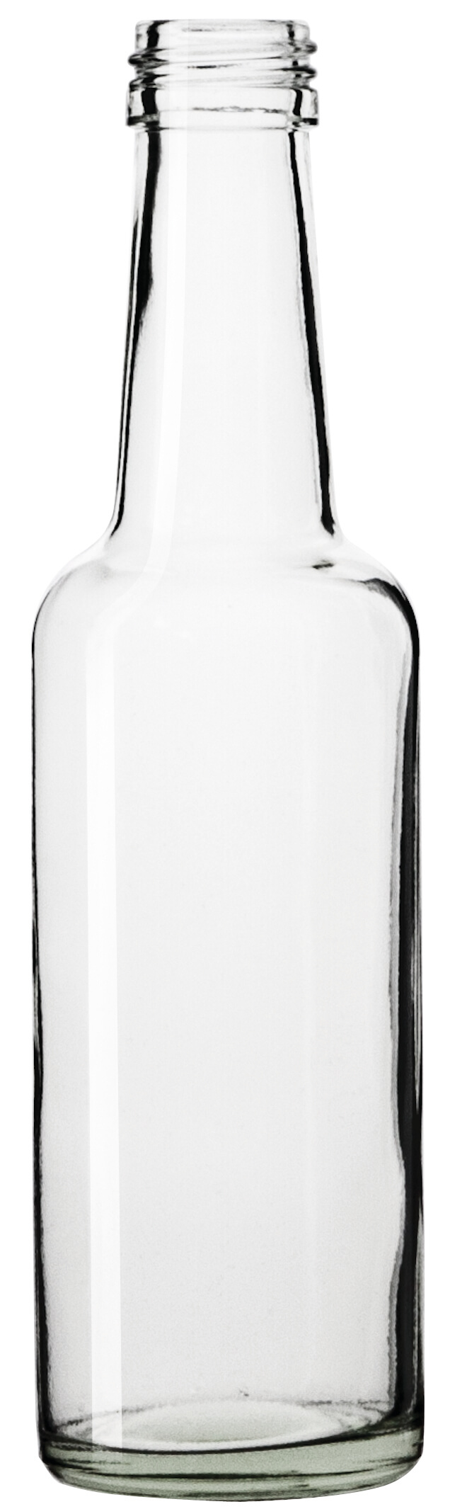 Small glassbottle for juice, liqueur, iceteas and more. The bottle has a straight bottle neck and a screw top. Usable with every standard pourer.