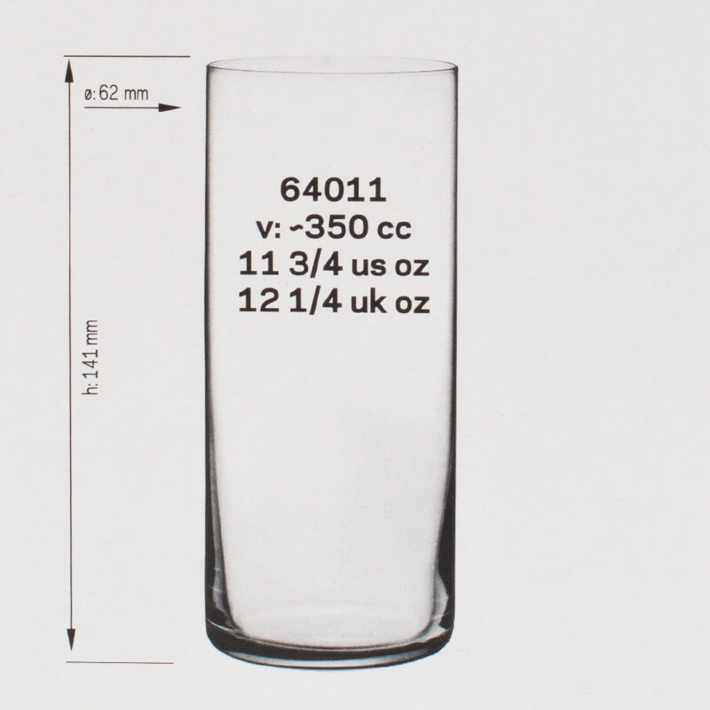 1Note: The specified 'total volume' (also referred to as gross capacity) of a glass indicates the maximum amount of liquid it can hold when filled to the brim. In contrast, the 'fill volume' (also referred to as usable volume or serving volume) describes the practically usable amount. Both values are given in ml or l. Due to production conditions, a tolerance of ±5% may occur, which corresponds to industry standards and does not constitute a defect.