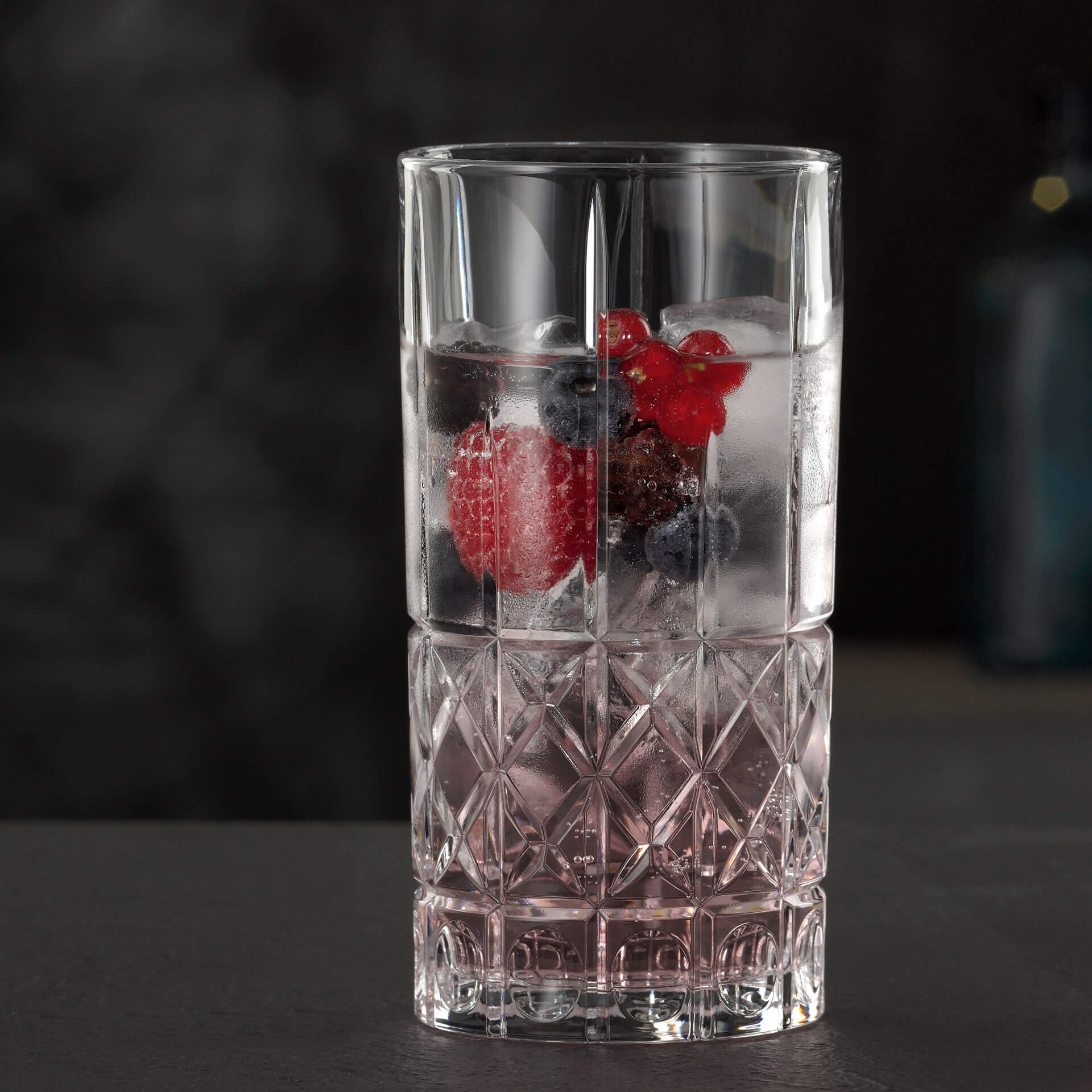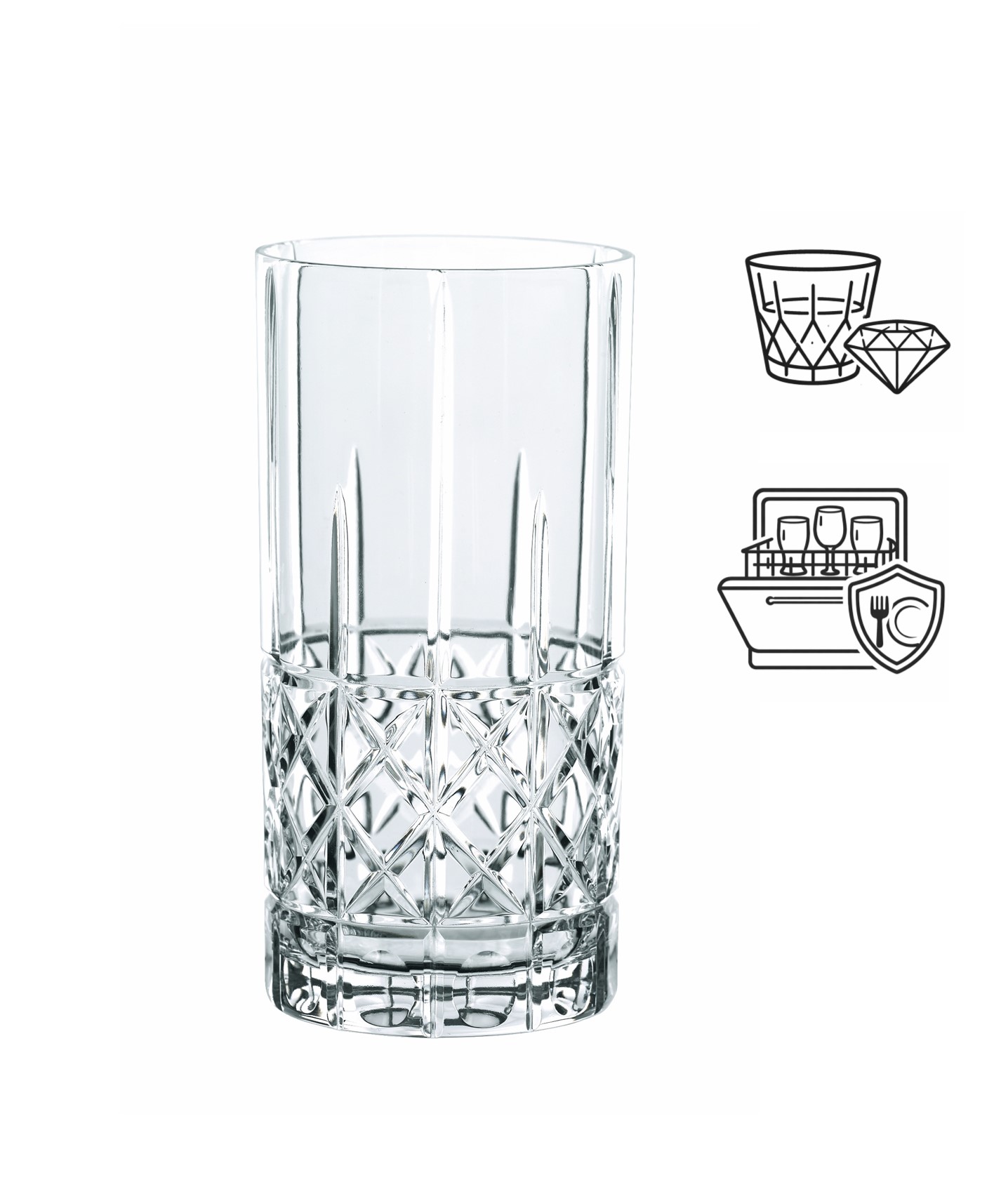 In this glass you serve mixed drinks, cocktails or soda in a fancy way! A little tip: Combine the "Diamond" cut also with the other three designs from the Highland series: "Cross", "Square" and "Straight" to create an appealing variety in your bar!