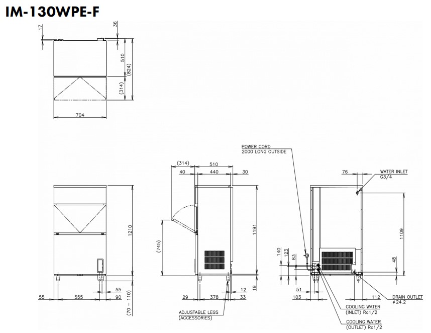 Hoshizaki Flexi Cube IM-130WPE-F - standard cube (28 x 28 x 32mm) 108kg