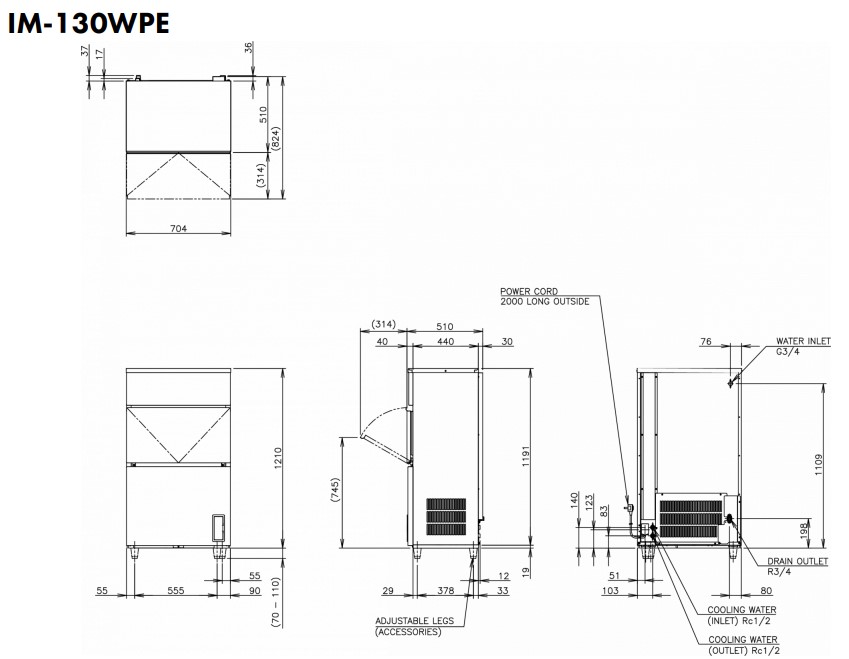 The Hoshizaki IM-130WPE series is designed as a classic water-cooled ice machine solution for professional use in gastronomy, hospitality, and bar environments. The water-cooled system ensures reliable operation even in high ambient temperatures or where air circulation is limited, making it particularly suitable for demanding installation conditions.