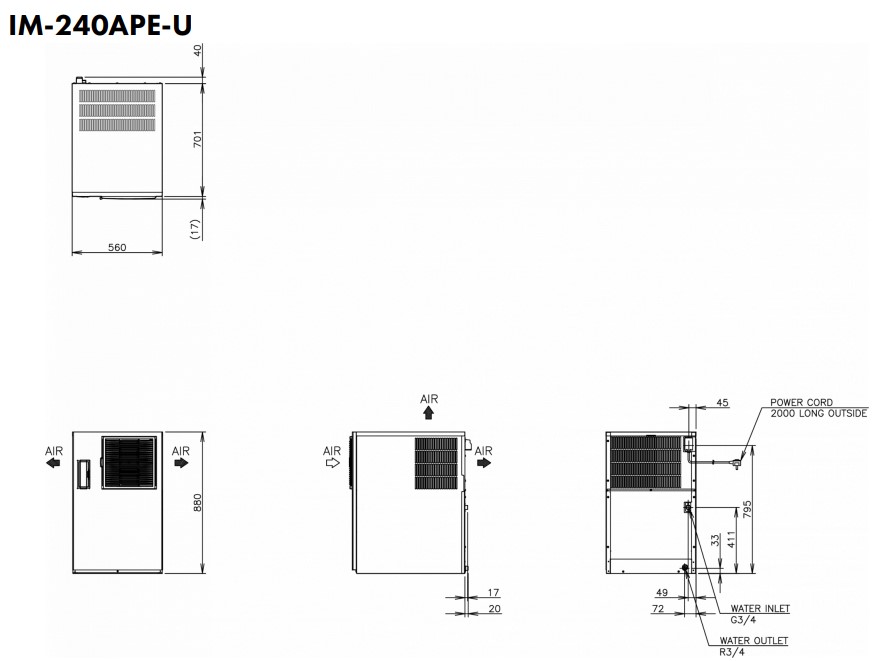 Hoshizaki Ultra Cube IM-240APE-U - standard cube (28 x 28 x 32mm) 210kg