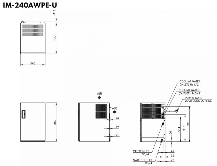 Hoshizaki Ultra Cube IM-240AWPE-U - standard cube (28 x 28 x 32mm) 205kg