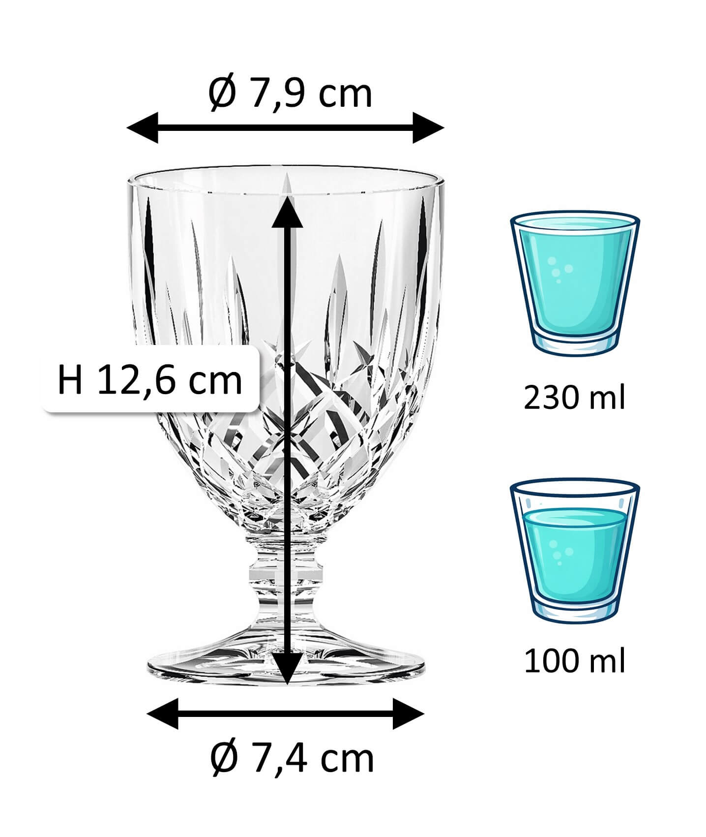 The stem of the wine glass is short and stands on a stable foot. Last but not least, the small wine goblets are made of brilliant crystal glass, which is also suitable for dishwashers.