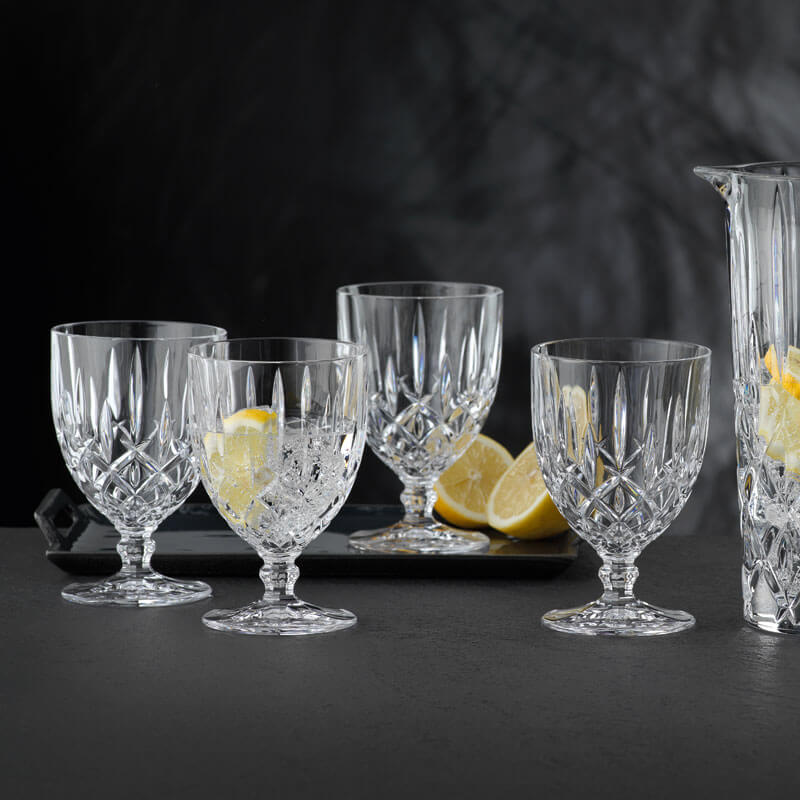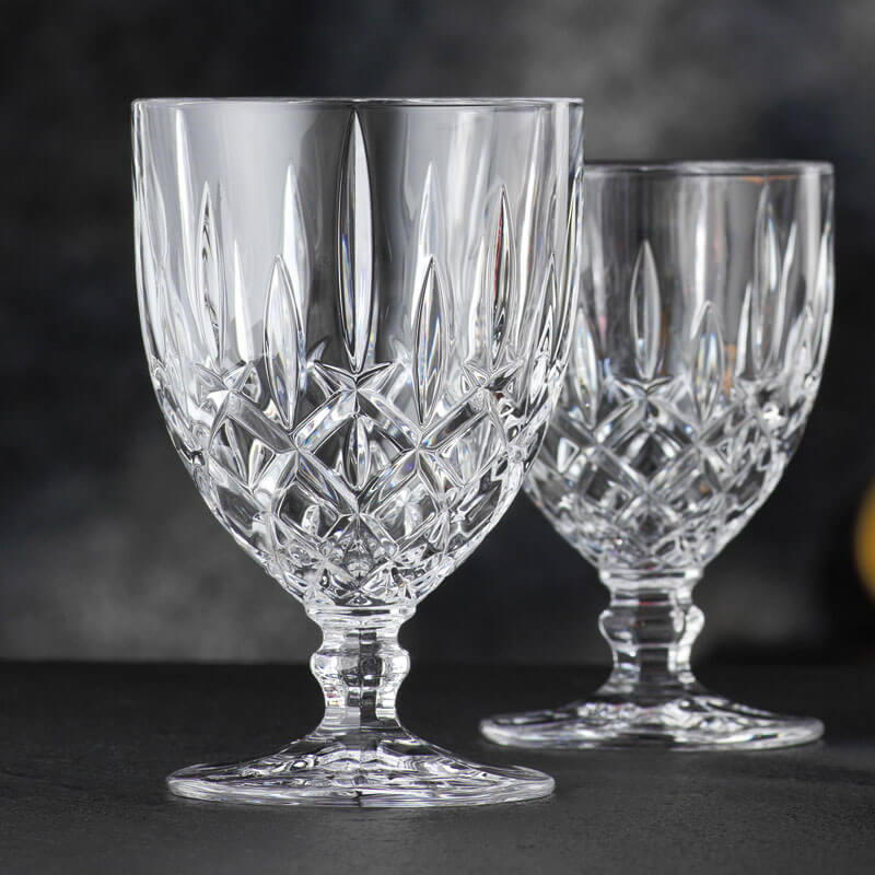 The 'Noblesse' wine goblet is made of high quality crystal glass and is decorated with a noble cut pattern. The Nachtmann wine goblet can also be used for cocktails and even to serve desserts.