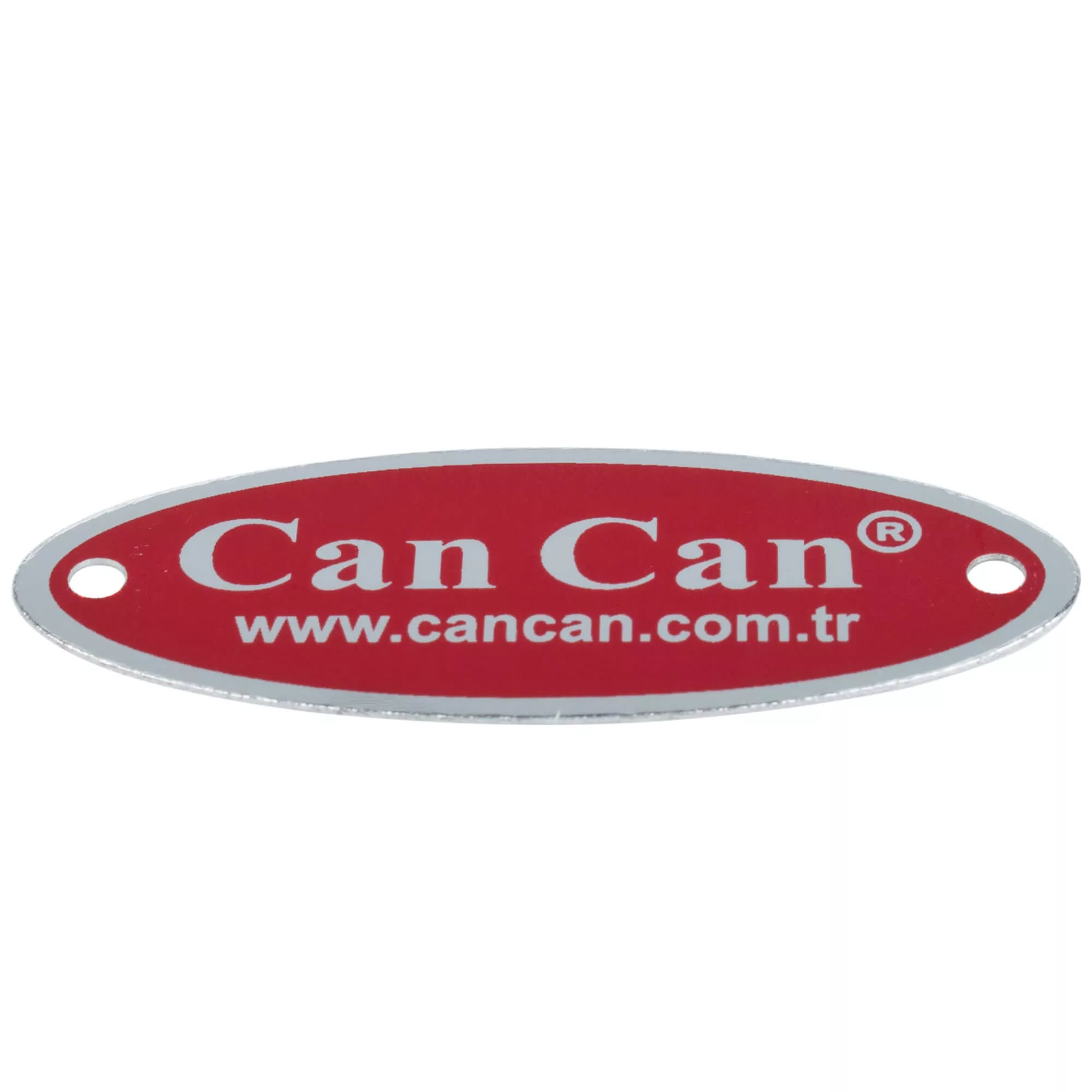 The label shows the lettering of the manufacturer Cancan. It is a replacement part for the Cancan manual juicer. To attach the badge, two of the rivets with the order no. 8412 are required.