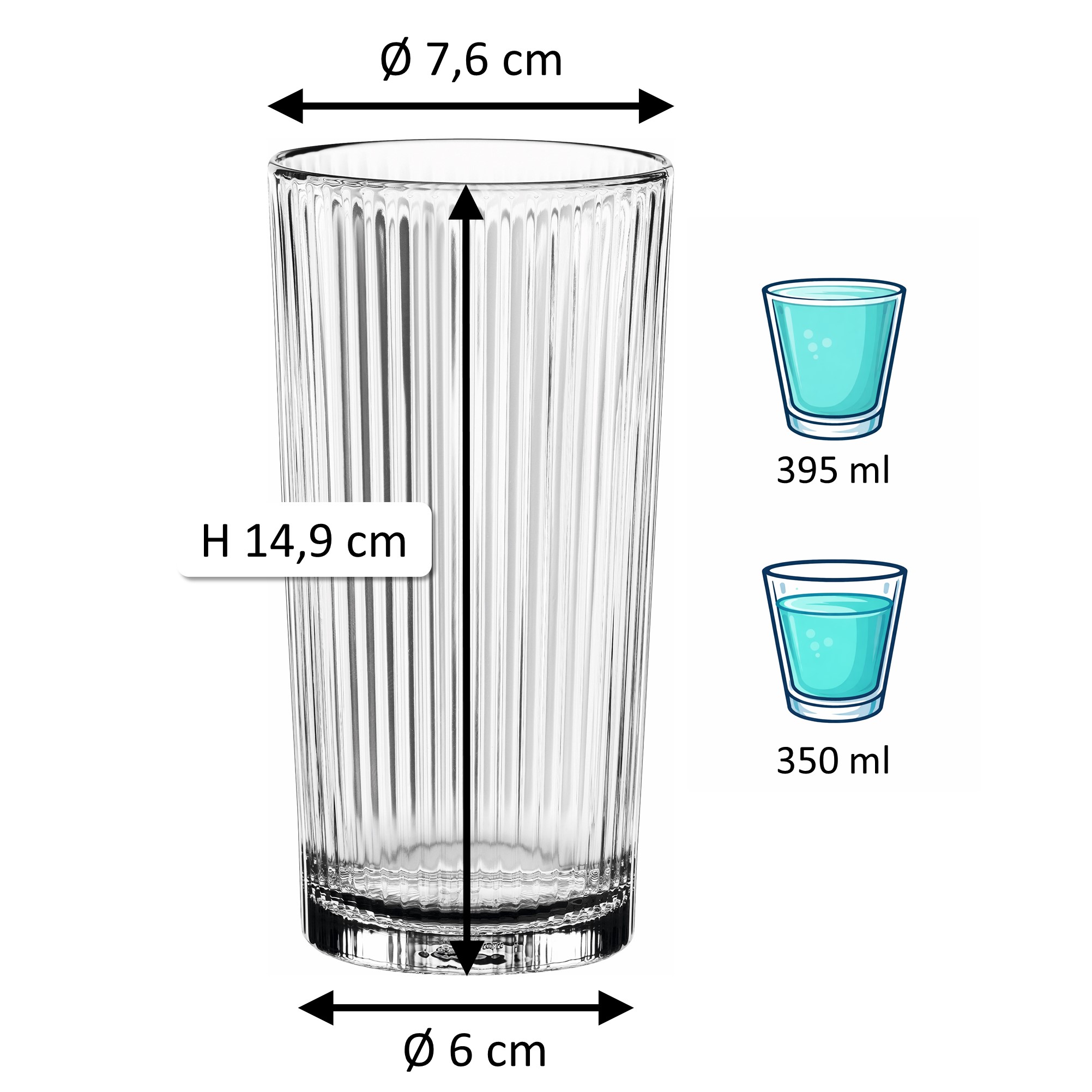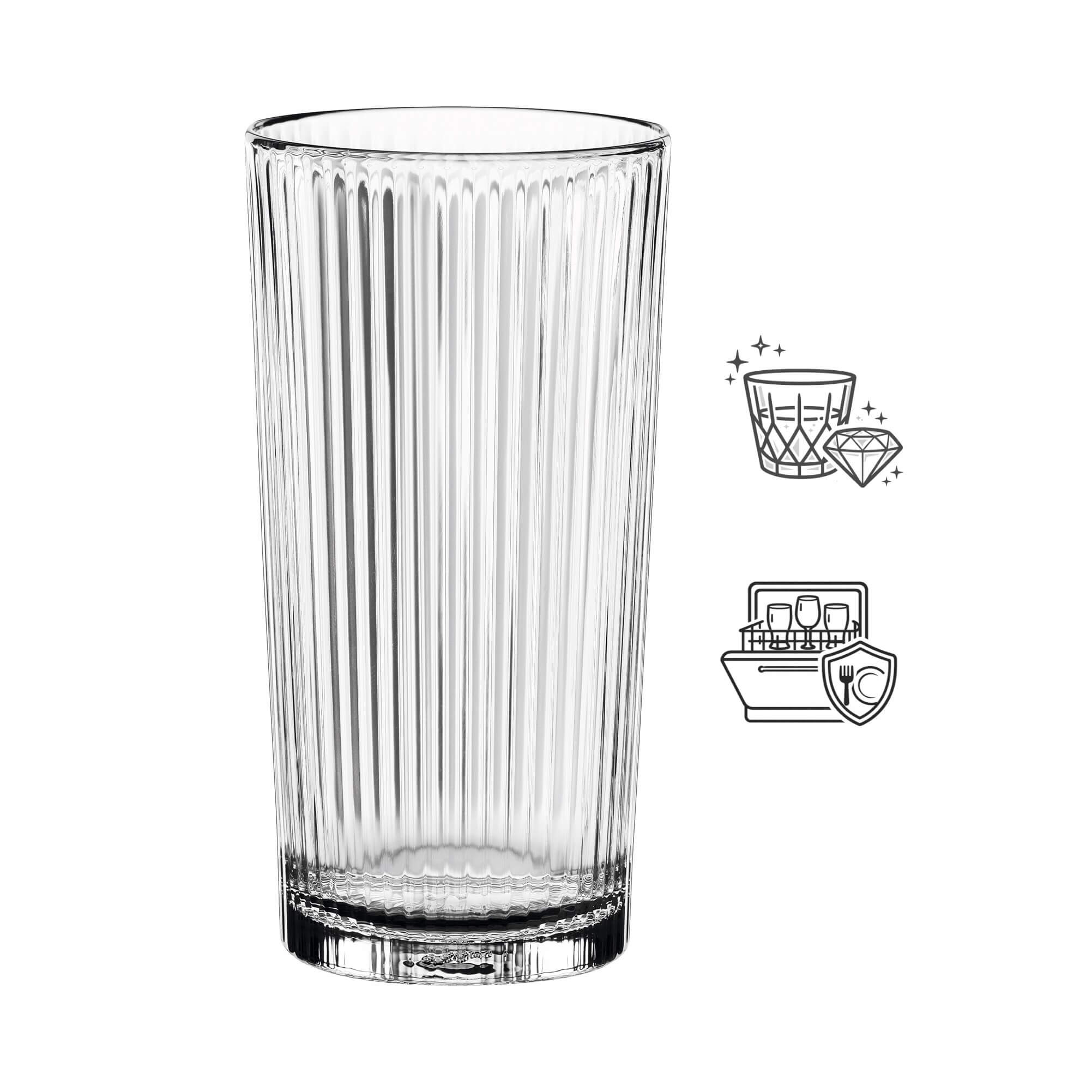 At 395ml, this long drink glass has the perfect capacity for typical highballs and long drinks, but is also a great all-rounder for serving soft drinks and more.