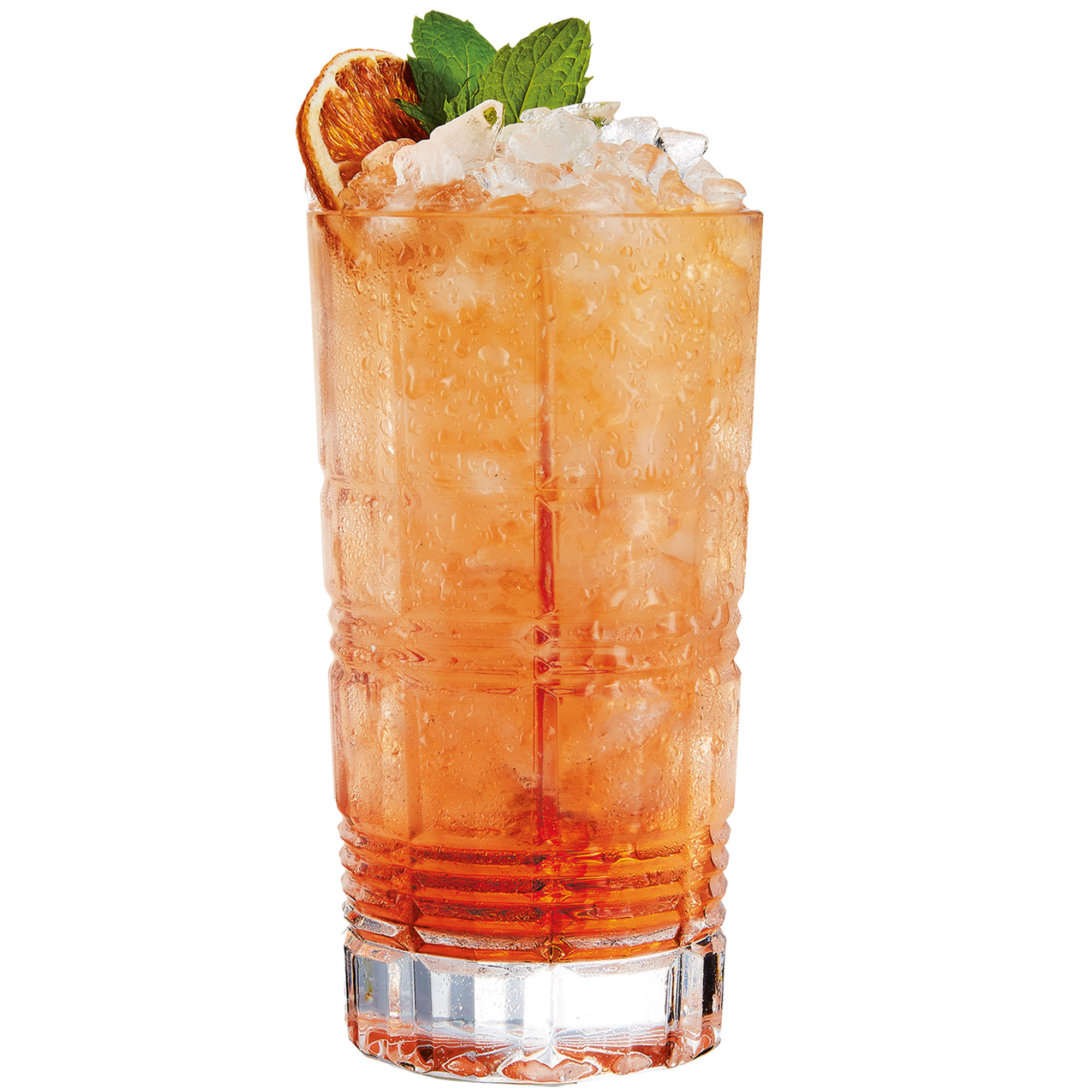 These large long drink glasses offer more than enough volume for sophisticated garnishes and lots of ice. Clink glasses in a group of friends with this case of 6 'Brixton' long drink glasses by Arocoroc. These are the largest long drink glasses in the series.