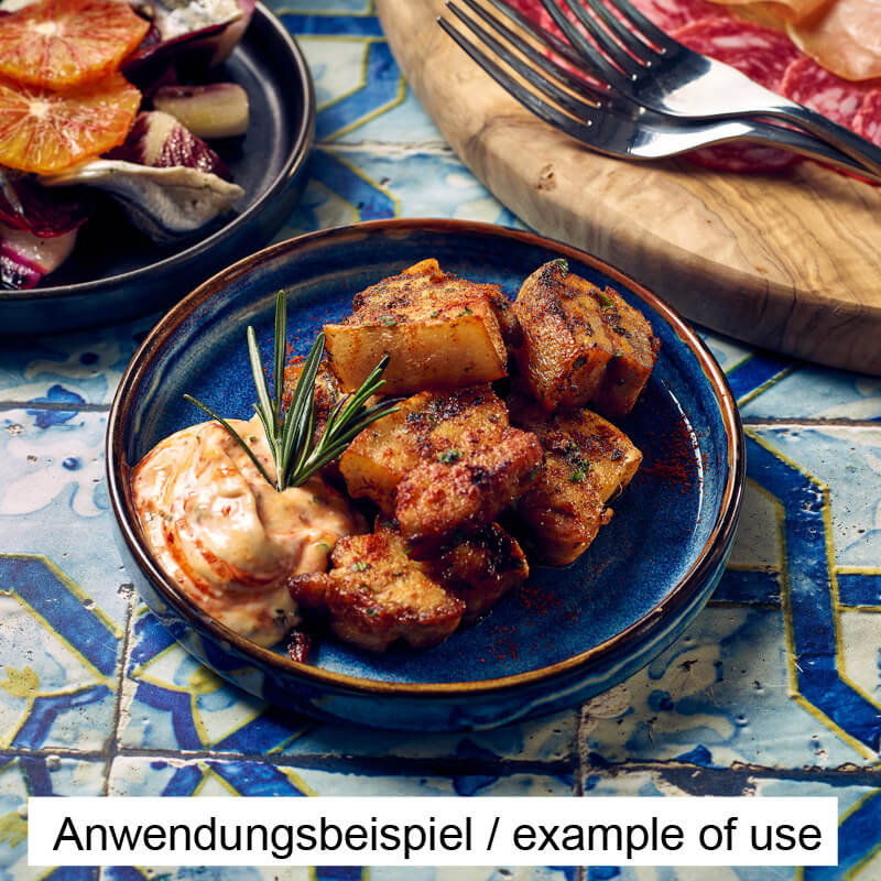 The low Terra Aqua Blue presentation plate is perfect for appetizers, desserts, or small side dishes. Its reactive glaze produces vibrant blue tones inspired by the colors of the sea – each piece is unique. Made from fully vitrified porcelain fired at high temperatures, it impresses with its density, stability, and durability in everyday use. Practical, stackable, and easy to clean. Manufactured in accordance with the British BS4034 standard, which guarantees tested quality for vitrified hotel tableware with a focus on water absorption and crack resistance.
