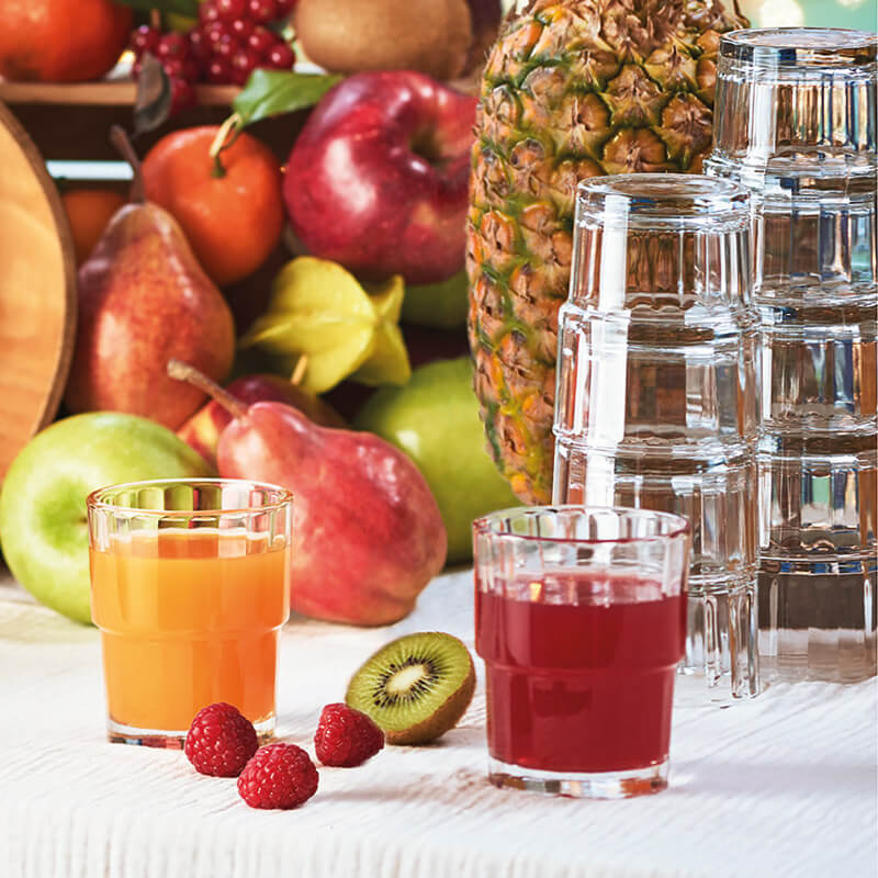 The Lyon Optique stackable glass from Bormioli Rocco is a practical, rather small drinking glass that is ideal for professional use in restaurants, cafes, or hotels. Its clear, structured appearance has a classic look and is suitable for both breakfast buffets and stylish coffee service. The glass is particularly well suited for juices at buffets, water with coffee, or smaller portions of soft drinks.