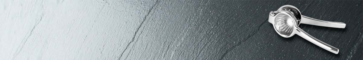 Manual handheld juicers that can be operated with one hand are also referred to as 'Mexican Elbow' juicers. These bar tools have their name from the way they work; They consist of two arms, which are connected by a hinge. Halved citrus fruits are placed in the recess. Then a cone is pressed into the fruit by a pressing both arms together. The juice from the citrus fruit then flows out through holes on the underside that work like an integrated strainer and retain larger parts such as fruit pits in the press. The fruit juice is either poured directly into the guest glass or into a shaker, a mixing glass or similar.