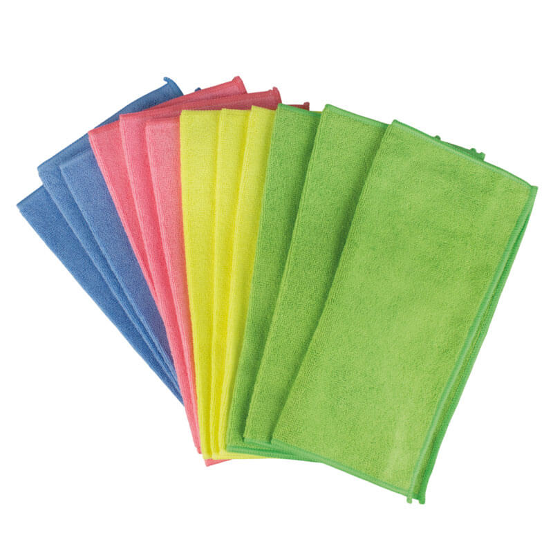 The 12 microfiber cloths in four different colors are perfect for cleaning in professional environments where color coding is important for hygiene. Each pack contains 3 cleaning cloths per color. Each microfiber cloth measures 32x32 cm. The colorful microfiber cloths are washable at up to 60°C.