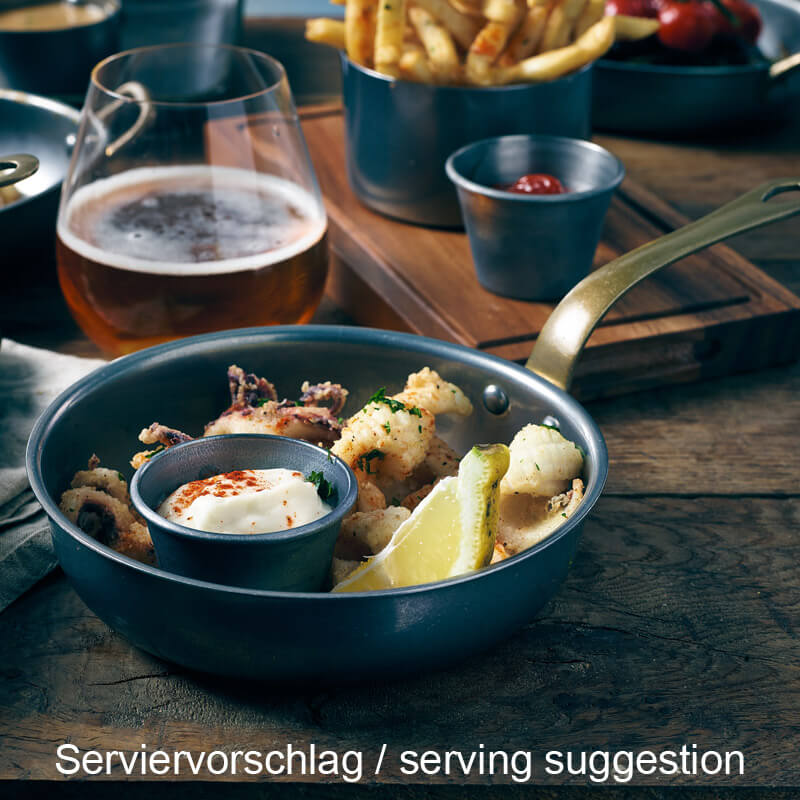 •Stainless steel •Industrial vintage finish •Attractive brass handle •Ideal for side dishes, appetizers, and desserts