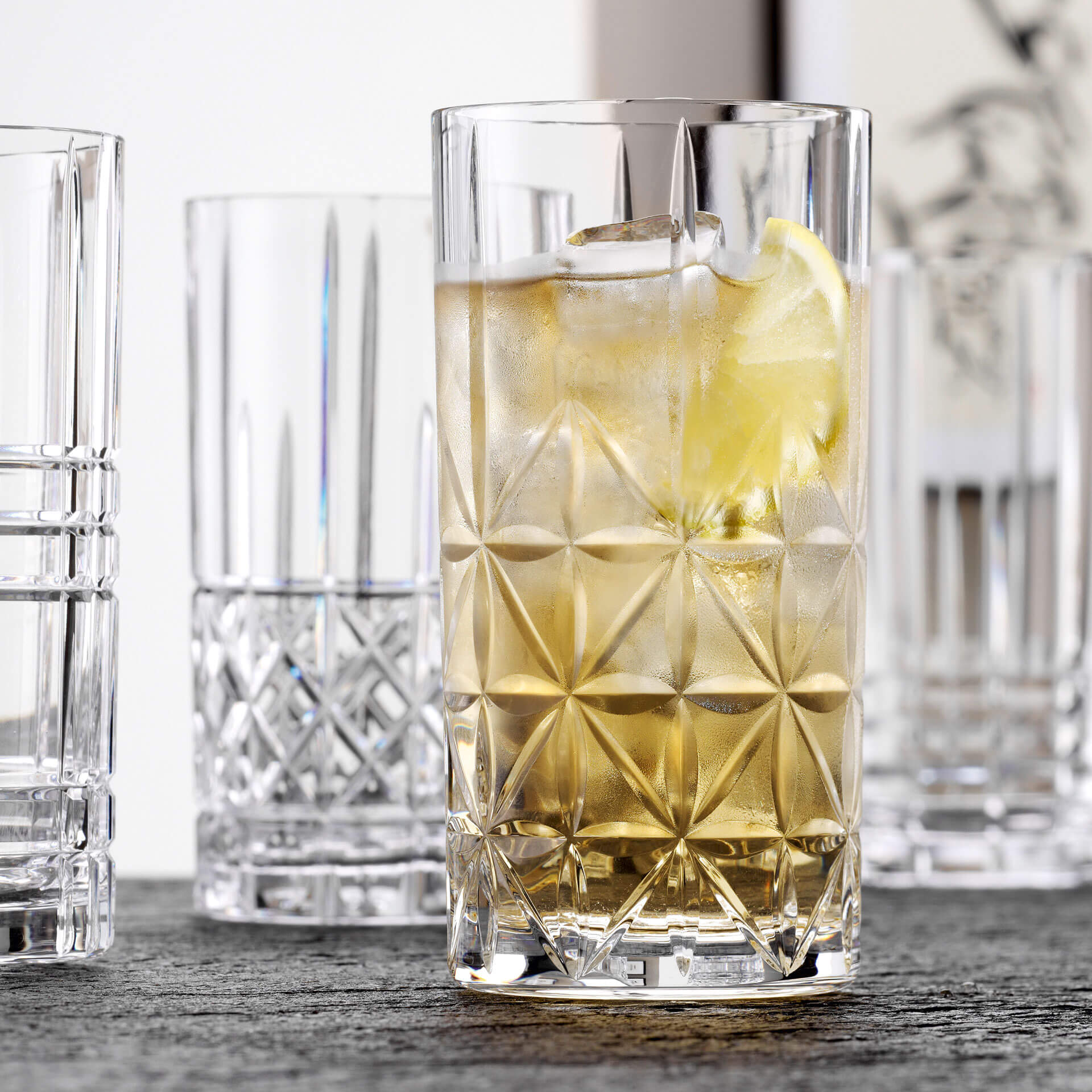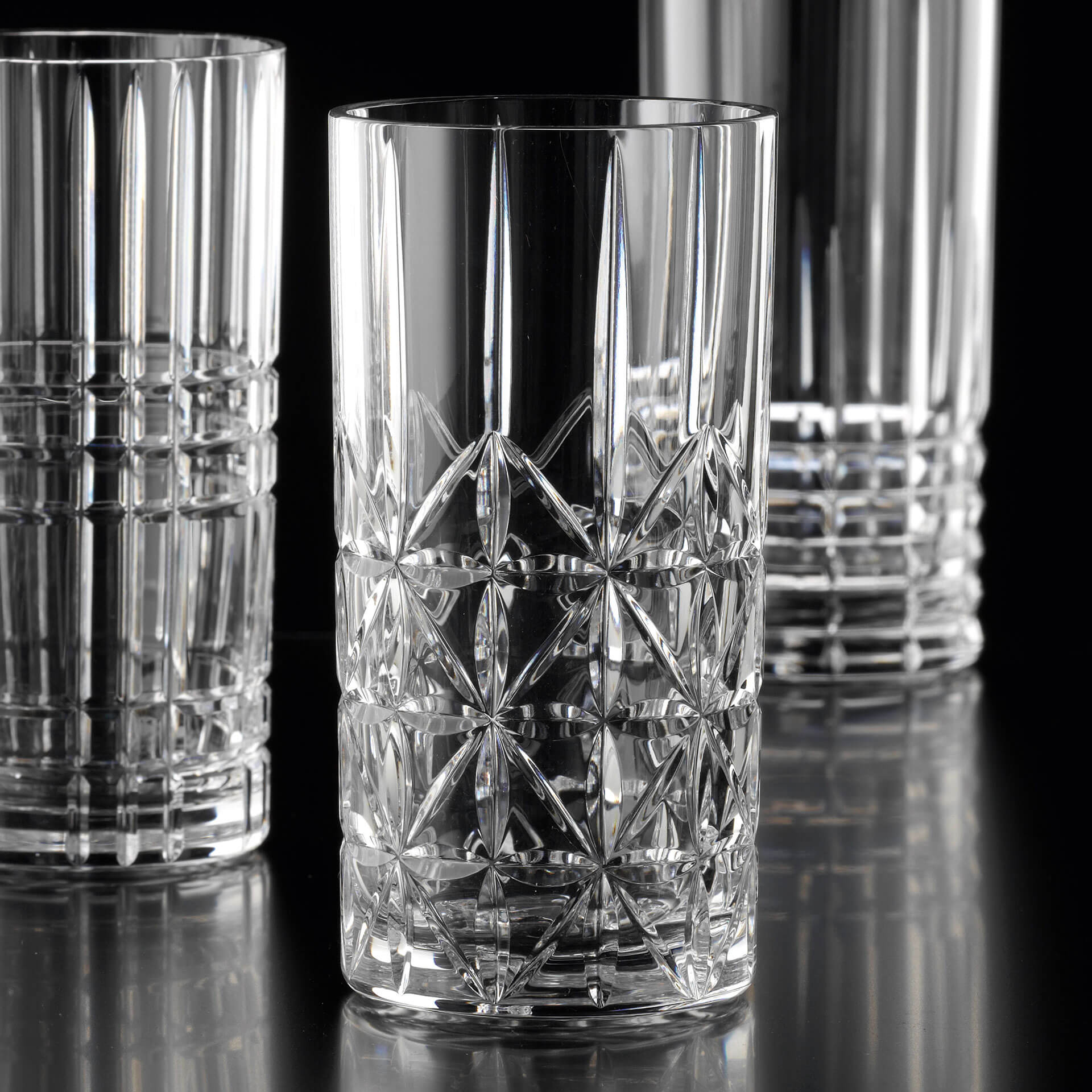 The "Highland" series by Nachtmann, with its retro-styled cut decoration, is inspired by the bar culture of the 1920s and 1930s. The high-brilliance crystal glass radiates the differently designed patterns and gives the glasses a special glimmer.