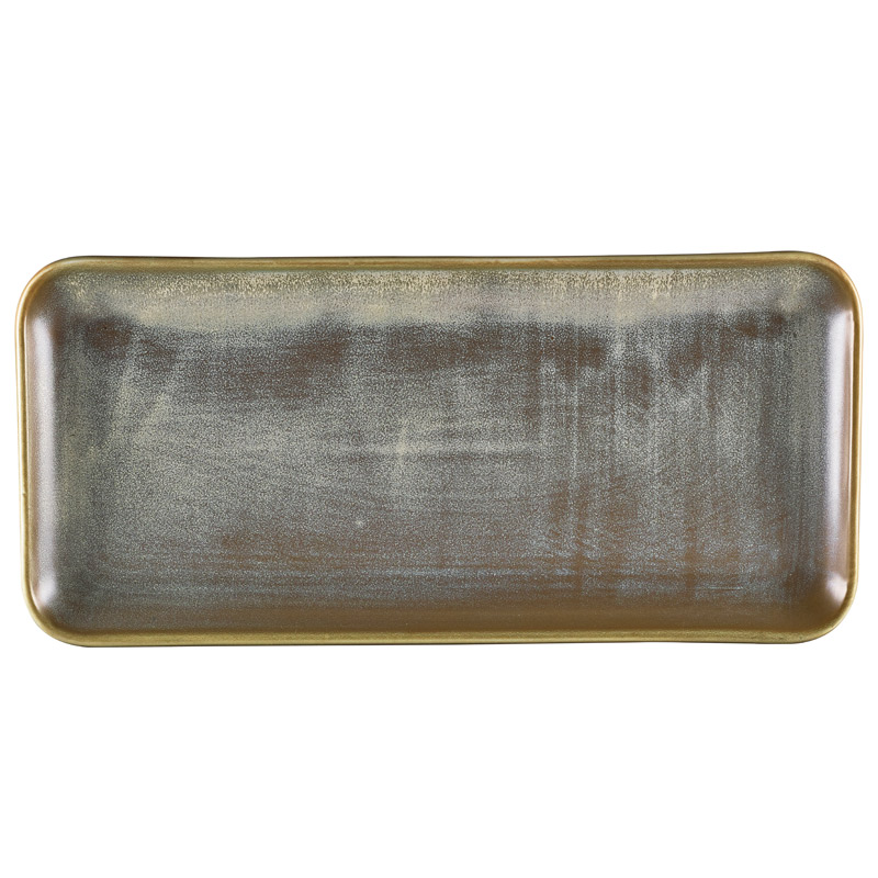 The large, narrow rectangular Terra Matt Grey platter measuring 36 × 16,5 cm offers plenty of presentation space for creative serving ideas – ideal for sharing formats, starters, or gourmet desserts. The reactive matt gray effect glaze creates soft gray shades and subtle textures that make each piece visually unique. High-temperature firing ensures fully vitrified porcelain with high density, durability, and professional longevity. Rolled edges increase chip resistance, while the polished base prevents scratches when stacking. Suitable for dishwashers, microwaves, and ovens. Complies with BS4034, the international standard for durable hotel tableware in everyday professional use.