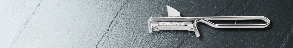 In general, two basic types of peelers can be distinguished, namely those with transverse and longitudinal blades. The longitudinal version dates back to a German patent from 1936 and is also known as the Famos economy peeler; these peelers are still produced under the same manufacturer's name today. The blade lying parallel to the handle allows easy guiding, often without much arm movement. This requires special versions for left- and right-handers. The Rex economy peeler was invented later; it has a blade positioned across the handle. This means longer peeling strokes; however, these peelers can be used ambidextrously.