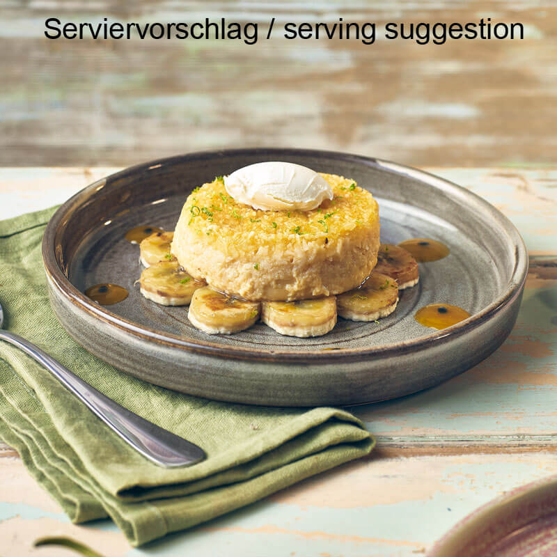 This presentation plate from the Terra Smoke Grey series adds a touch of style to any table or buffet. It has a steep rim approximately 2 cm high and a flat surface that is ideal for presenting desserts, petit fours, side dishes, or small appetizers. The subtle color of the smoke gray effect glaze emphasizes a modern, understated presentation. Made from vitrified porcelain in accordance with BS4034 and developed for professional use, the plate is highly suitable for everyday use. Its stackability and easy-care properties facilitate service operations. Its rolled edges make it particularly chip-resistant, and the polished base prevents scratches on sensitive surfaces and when stacking.