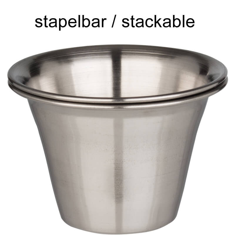 With a volume of 90ml, this stackable dip and snack bowl is the perfect size for serving ketchup, mayonnaise and the like. In addition to sauces and dips, the stainless steel ramekin is also the ideal size for a smaller portion of peanuts or spicy corn. As the bowl is relatively slim and tall, you can easily pour the snacks into your hand - which can get be much more difficult with a shallow bowl.